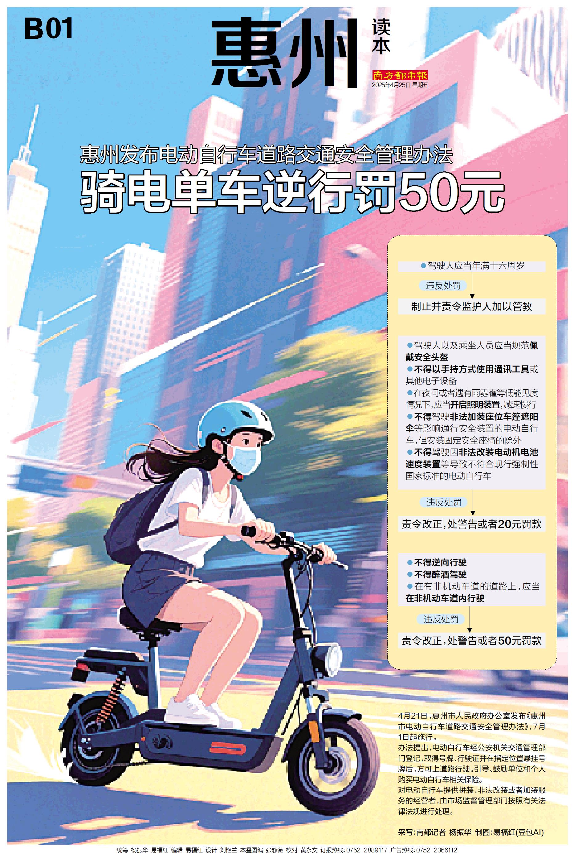 骑电单车逆行罚50元