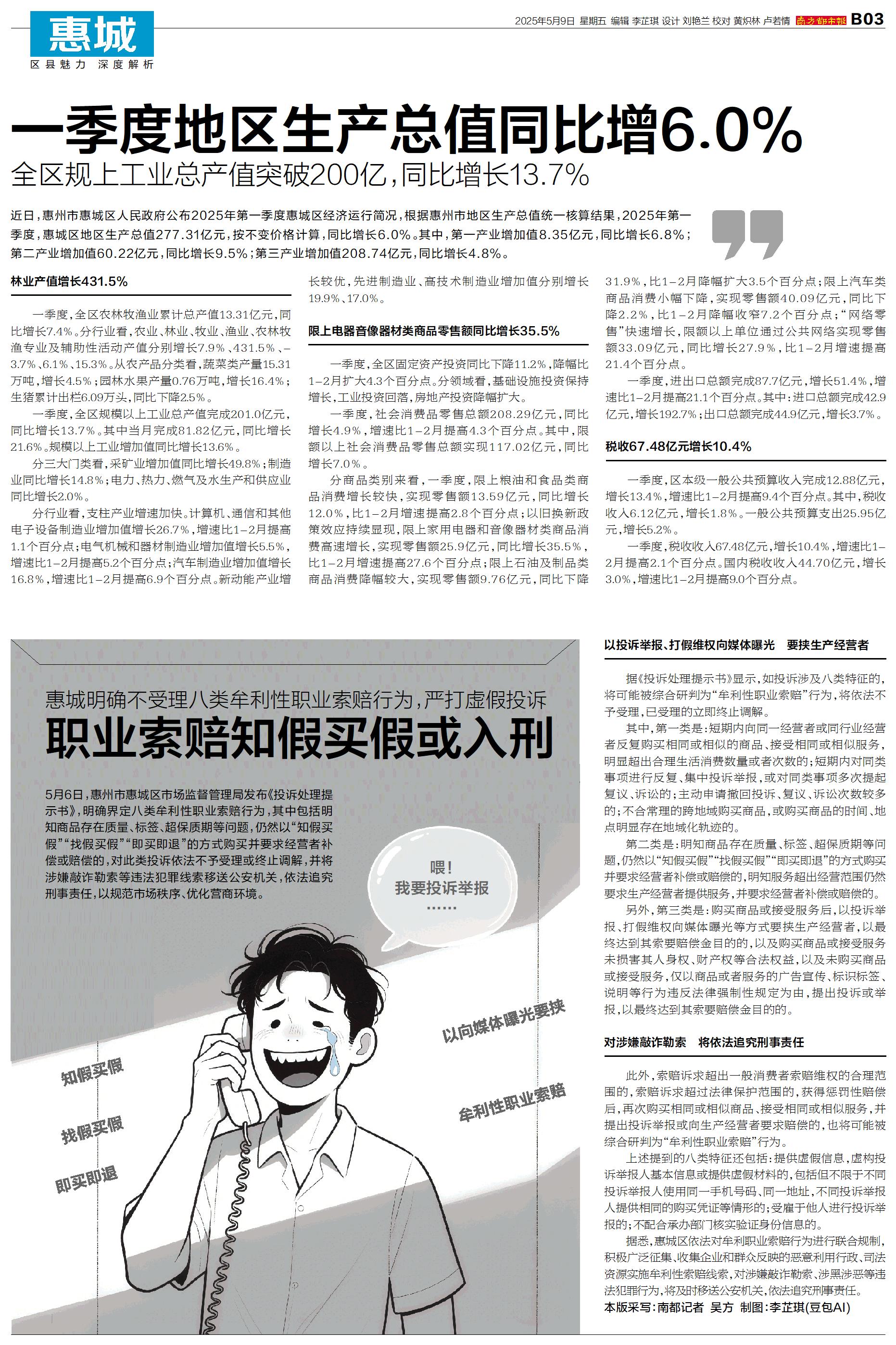 5月6日,惠州市惠城区市场监督管理局发布《投诉处理提示书》,明确界定八类牟利性职业索赔行为,其中包括明知商品存在质量、标签、超保质期等问题,仍然以“知假买假”“找假买假”“即买即退”的