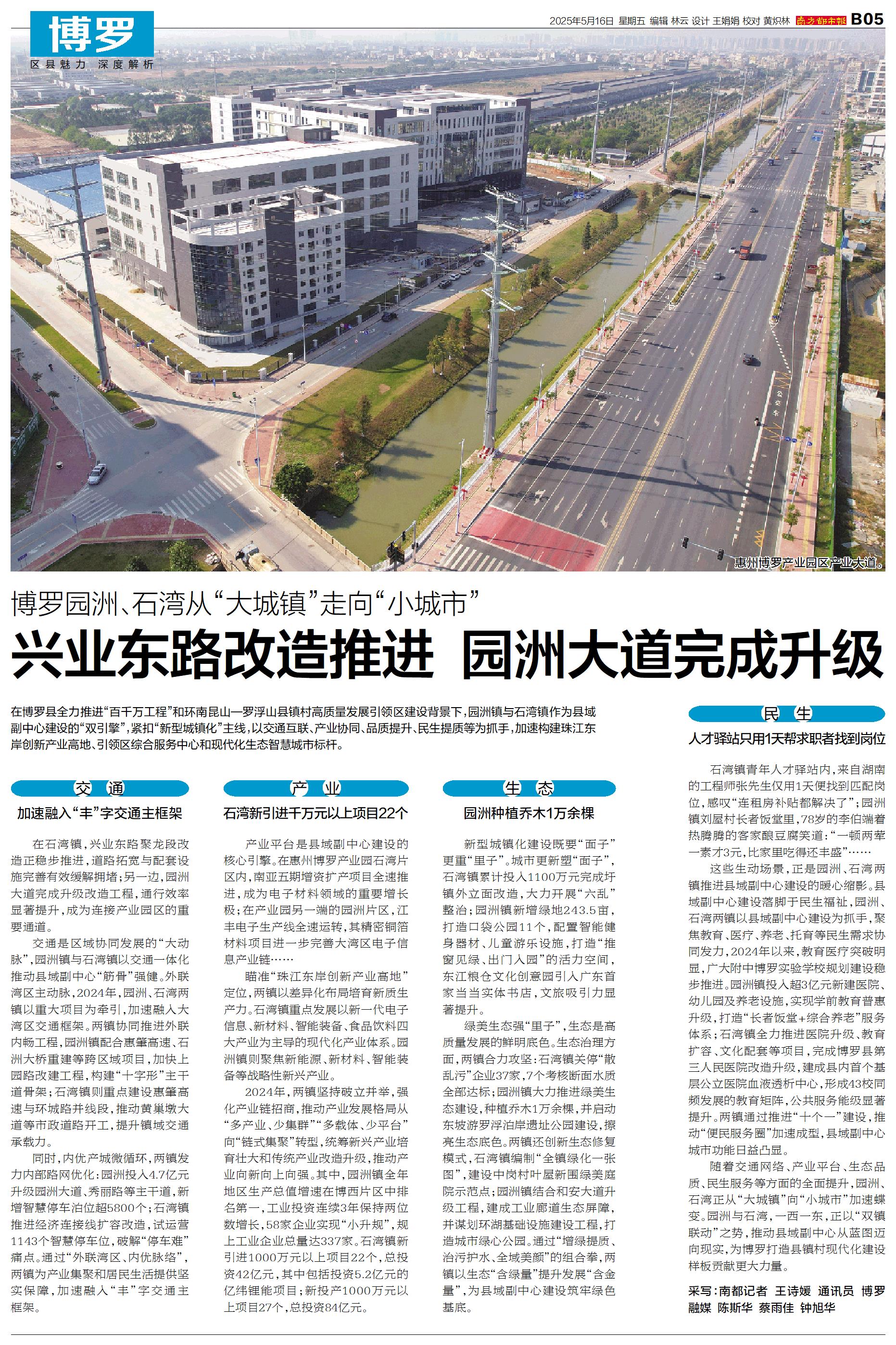 在博罗县全力推进“百千万工程”和环南昆山—罗浮山县镇村高质量发展引领区建设背景下,园洲镇与石湾镇作为县域副中心建设的“双引擎”,紧扣“新型城镇化”主线,以交通互联、产业协同、品质提升、民生提质等为