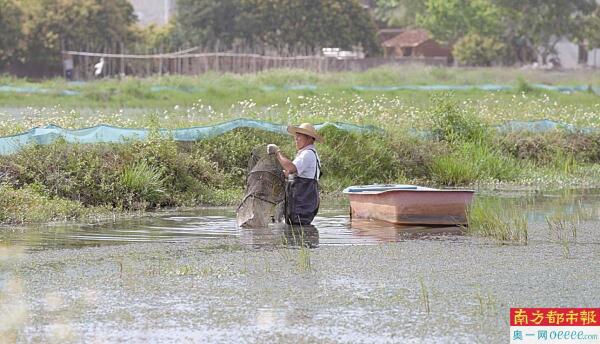 盘沱村虾田的技术人员正在捕捞小龙虾。 通讯员供图