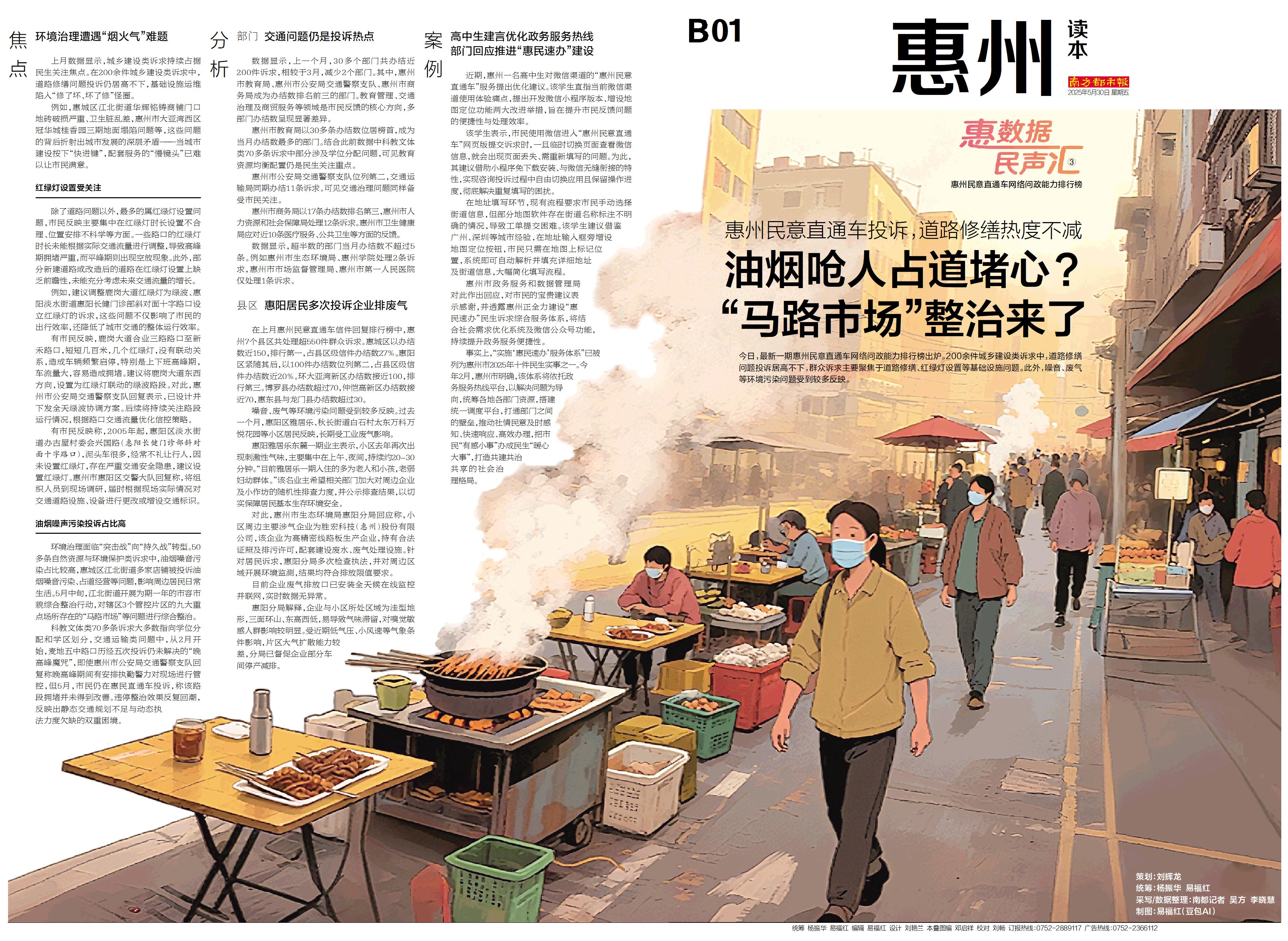 惠州民意直通车网络问政能力排行榜 今日,最新一期惠州民意直通车网络问政能力排行榜出炉。200余件城乡建设类诉求中,道路修缮问题投诉居高不下,群众诉求主要聚焦于道路修缮、红绿灯设置等基础设施问题。
