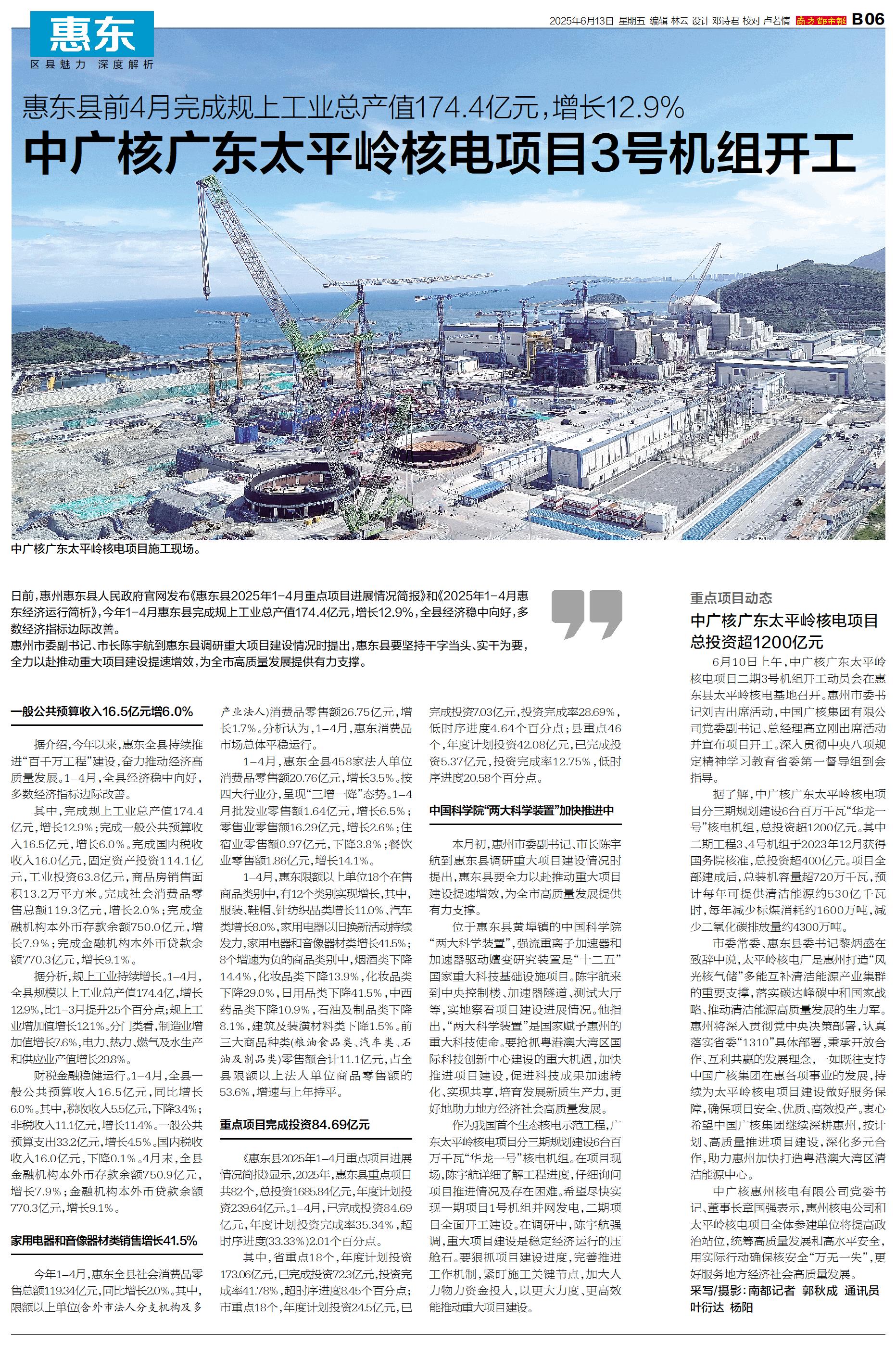 日前,惠州惠东县人民政府官网发布《惠东县2025年1-4月重点项目进展情况简报》和《2025年1-4月惠东经济运行简析》,今年1-4月惠东县完成规上工业总产值174.4亿元,增长12.9%,全县经