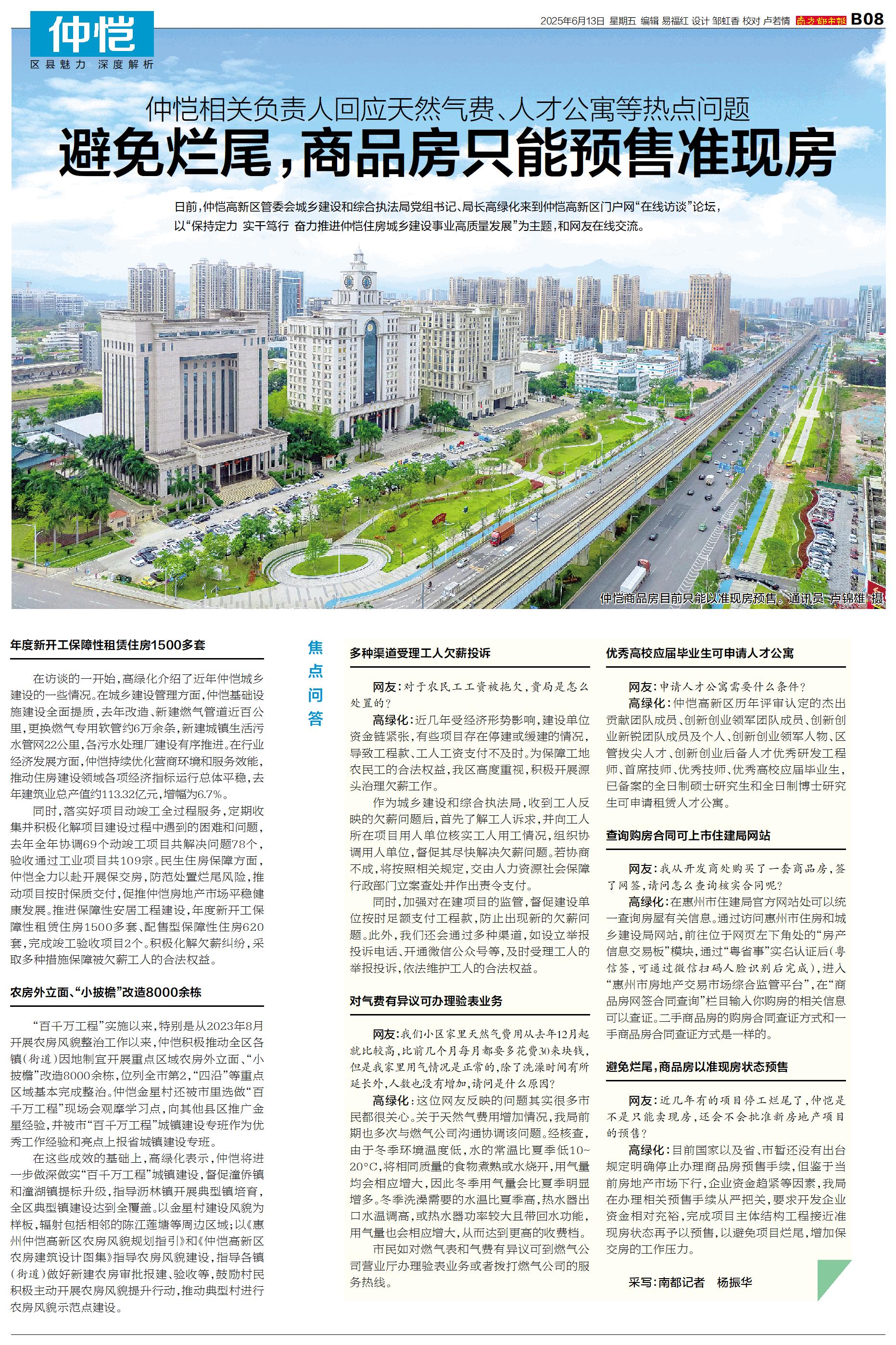 日前,仲恺高新区管委会城乡建设和综合执法局党组书记、局长高绿化来到仲恺高新区门户网“在线访谈”论坛,以“保持定力 实干笃行 奋力推进仲恺住房城乡建设事业高质量发展”为主题,和网友在线交流。 年度