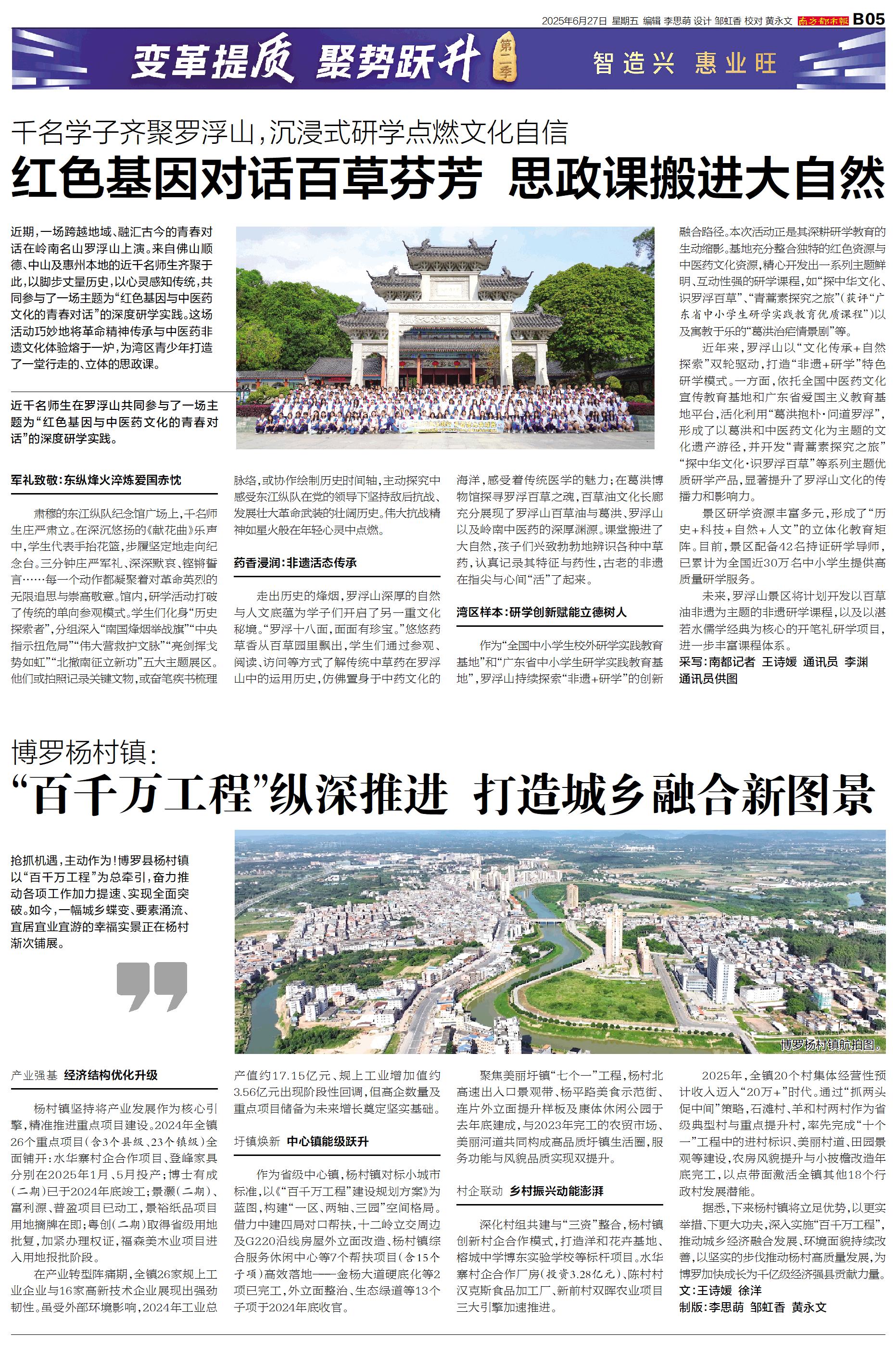 近期,一场跨越地域、融汇古今的青春对话在岭南名山罗浮山上演。来自佛山顺德、中山及惠州本地的近千名师生齐聚于此,以脚步丈量历史,以心灵感知传统,共同参与了一场主题为“红色基因与中医药文化的青春对话”