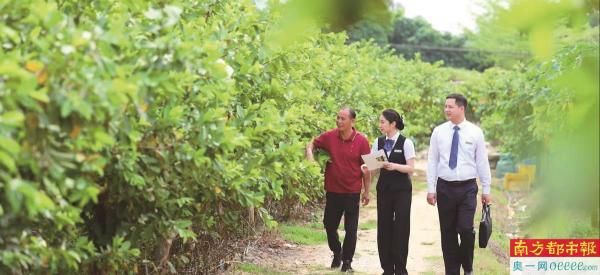 惠州农商银行工作人员到客户种植基地了解果树生长情况。