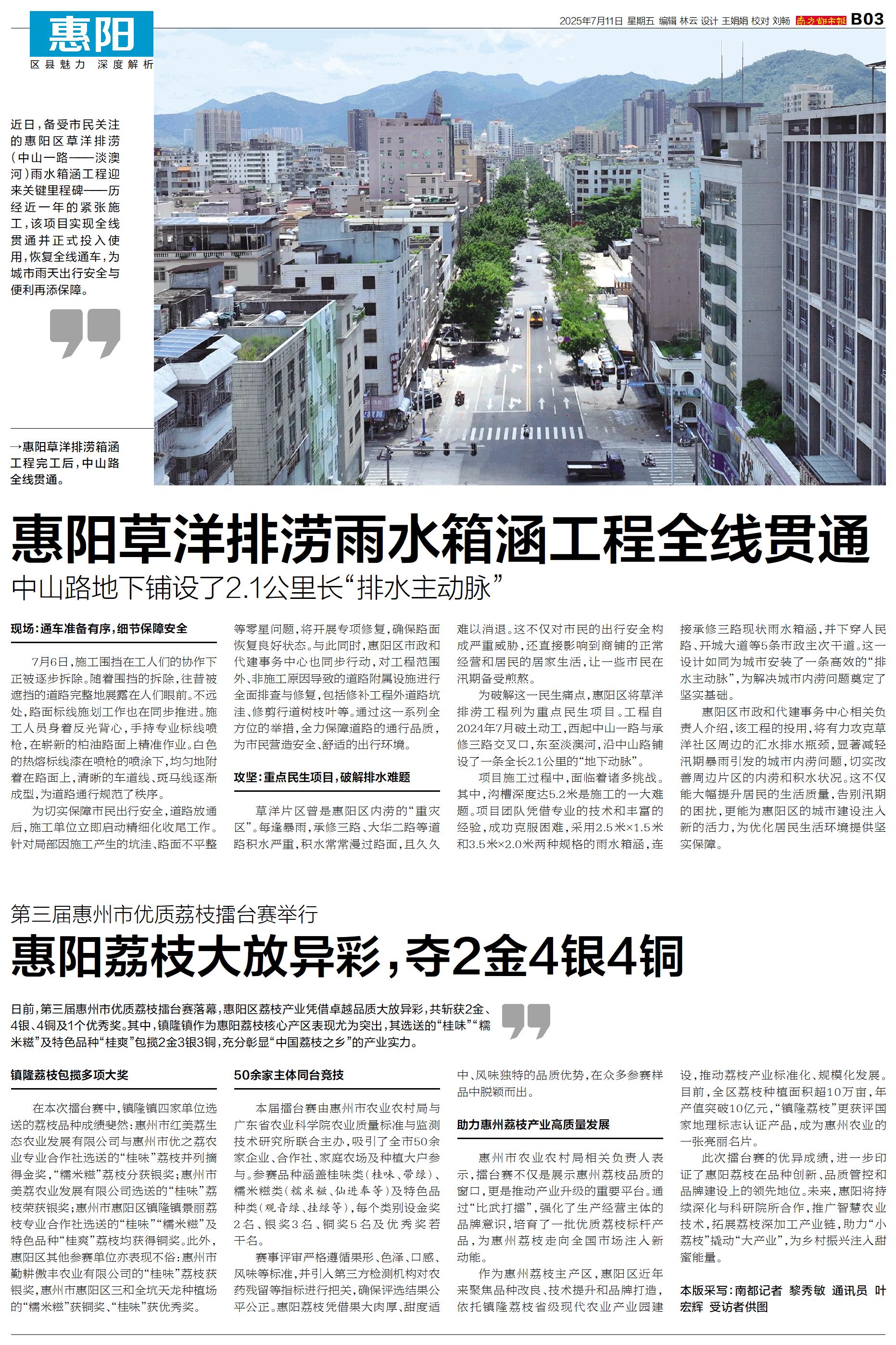 近日,备受市民关注的惠阳区草洋排涝(中山一路——淡澳河)雨水箱涵工程迎来关键里程碑——历经近一年的紧张施工,该项目实现全线贯通并正式投入使用,恢复全线通车,为城市雨天出行安全与便利再添保障。 现