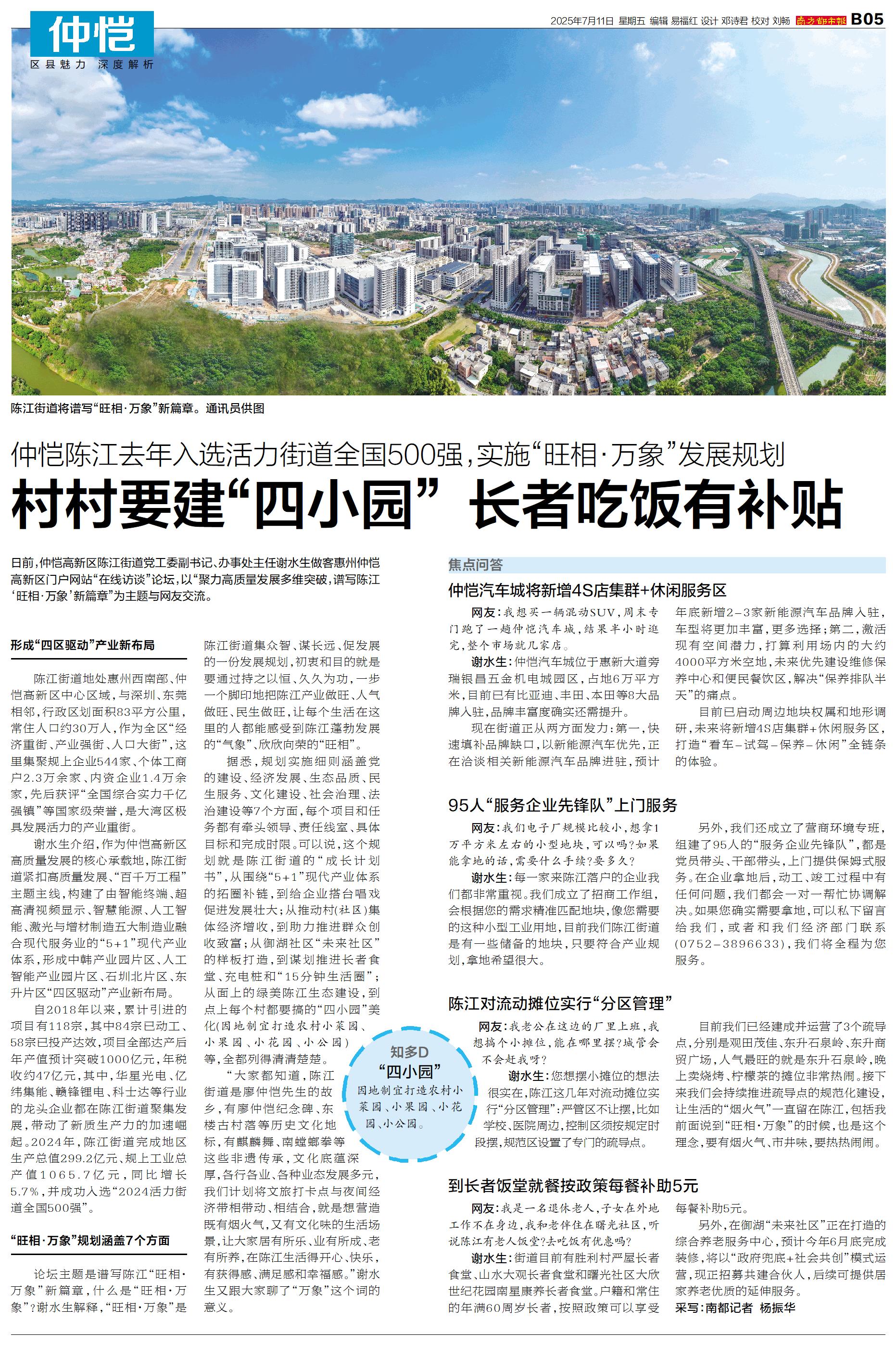 日前,仲恺高新区陈江街道党工委副书记、办事处主任谢水生做客惠州仲恺高新区门户网站“在线访谈”论坛,以“聚力高质量发展多维突破,谱写陈江‘旺相·万象’新篇章”为主题与网友交流。 形成“四区驱动”产