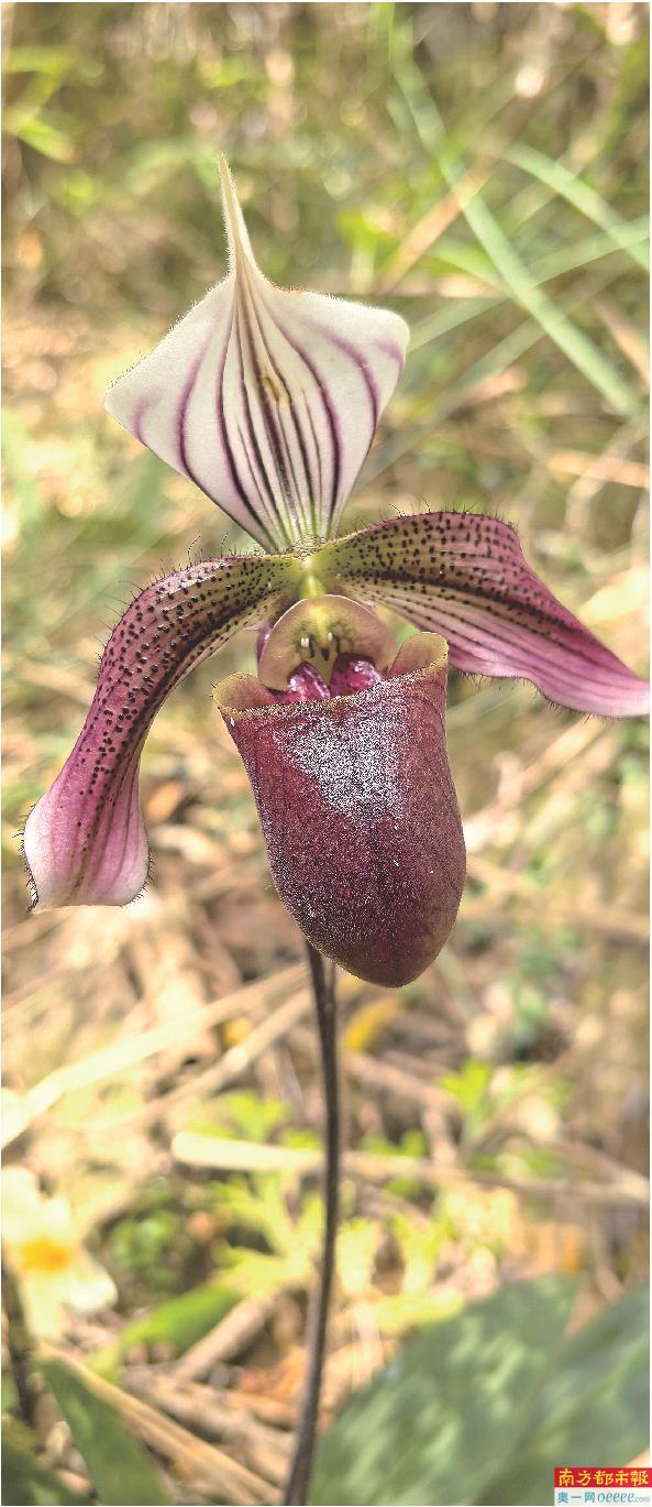乌禽嶂栖息着大量珍稀濒危物种,这是国家一级重点保护植物紫纹兜兰。 受访者供图