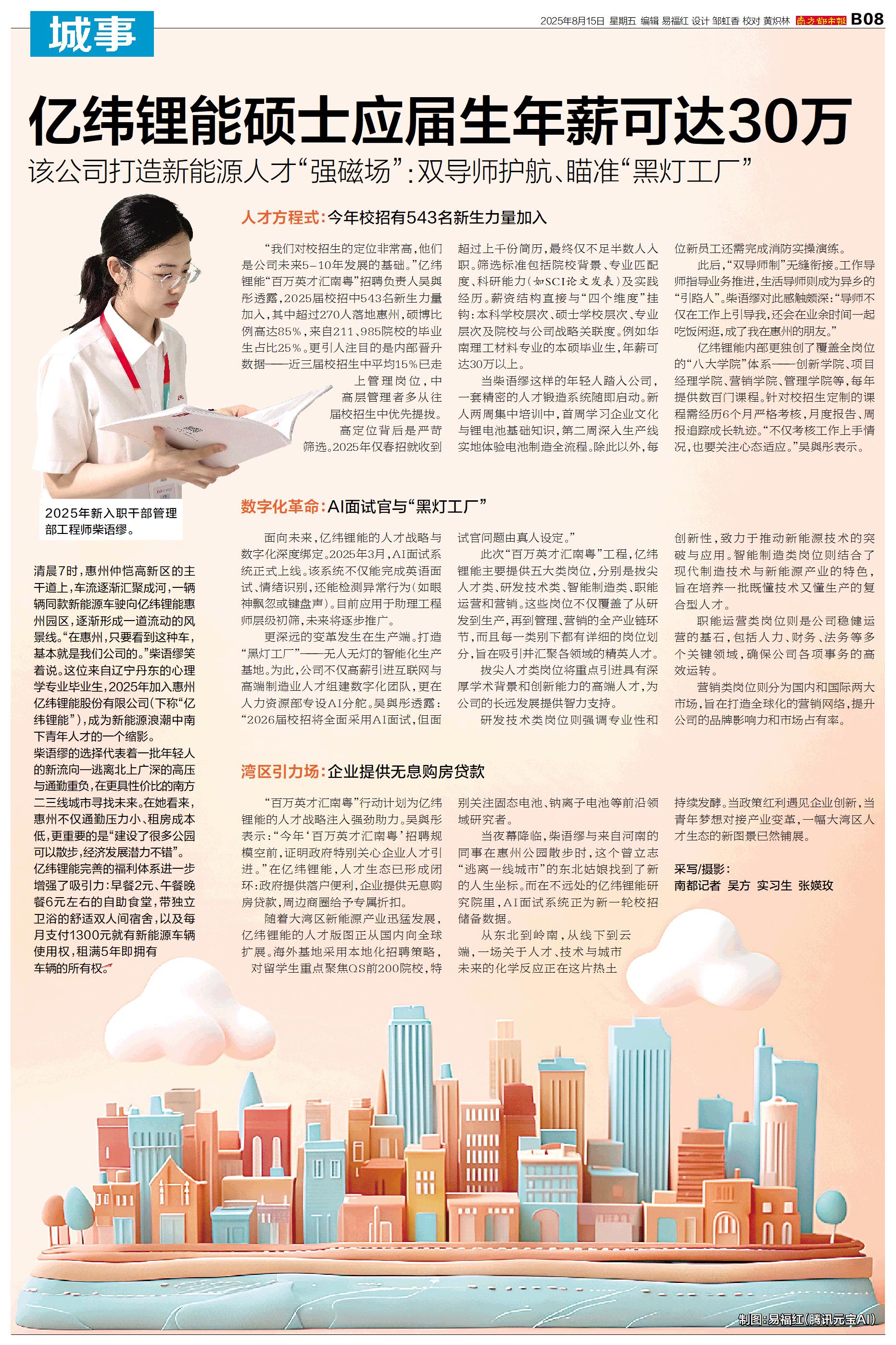 当夜幕降临,柴语缪与来自河南的同事在惠州公园散步时,这个曾立志“逃离一线城市”的东北姑娘找到了新的人生坐标。而在不远处的亿纬锂能研究院里,AI面试系统正为新一轮校招储备数据。