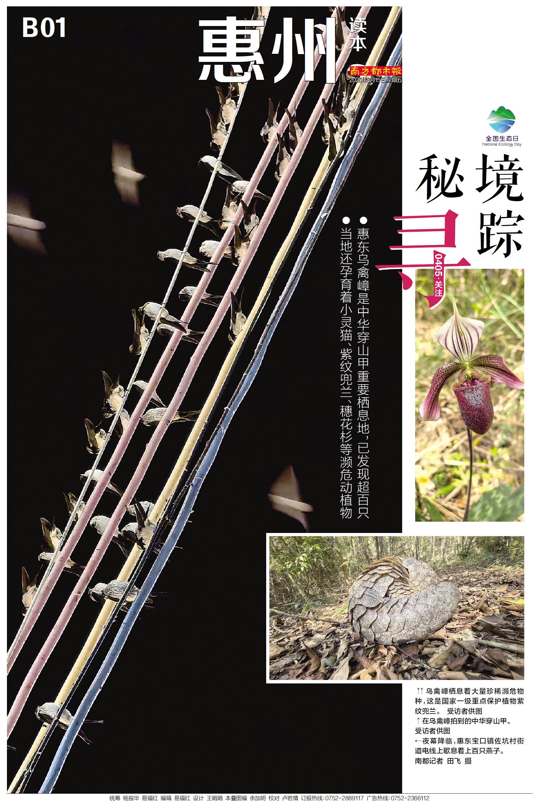 惠东乌禽嶂是中华穿山甲重要栖息地,已发现超百只 当地还孕育着小灵猫、紫纹兜兰、穗花杉等濒危动植物 0405·关注