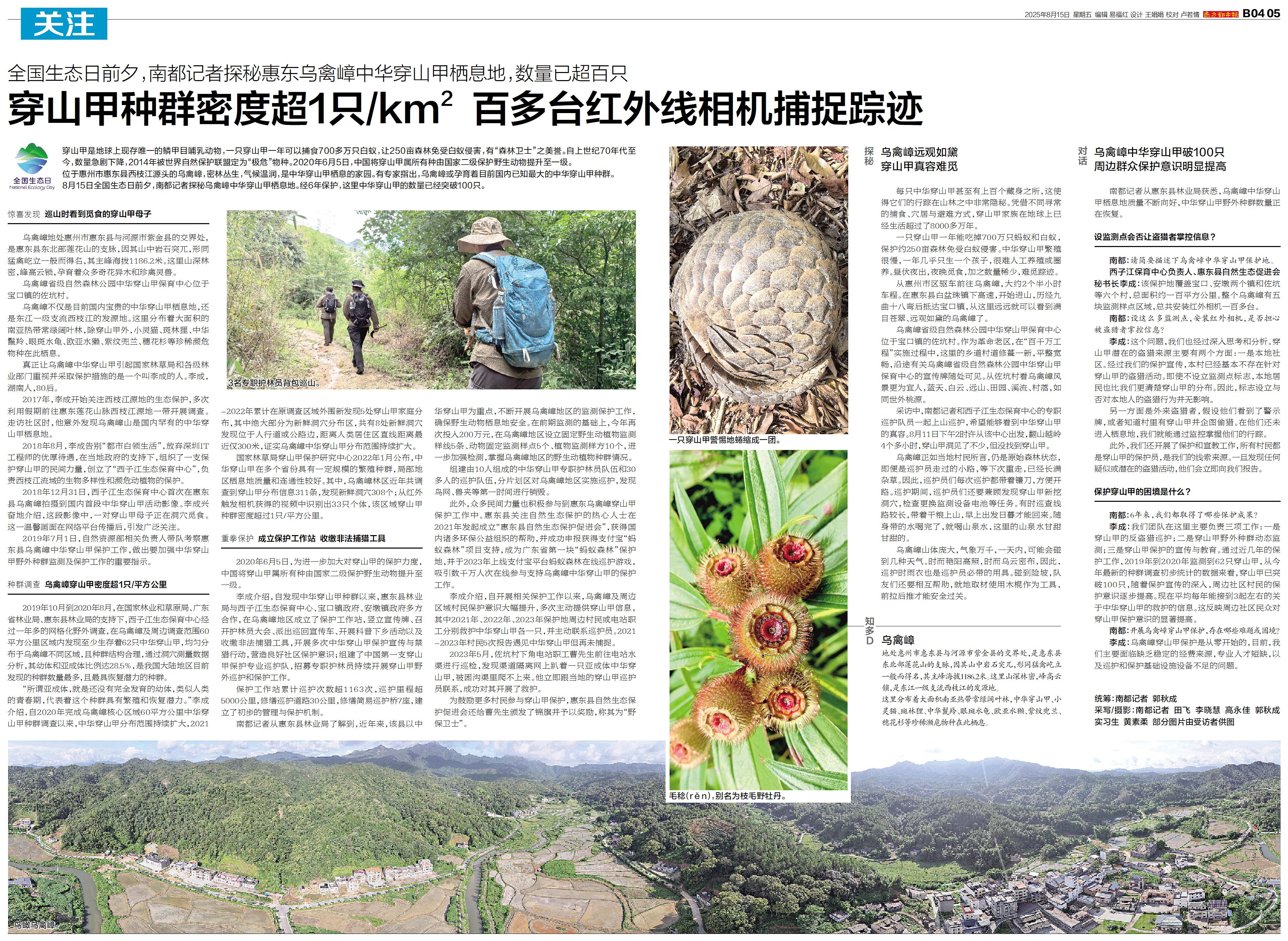 穿山甲种群密度超1只/k㎡ 百多台红外线相机捕捉踪迹