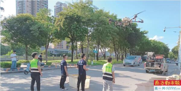惠阳淡水街道安排专业操作人员操控无人机,根据不同区域的地形和蚊虫密度实现精准消杀。
