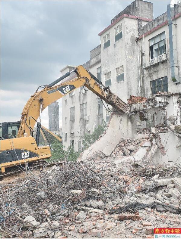 河南岸街道金山湖片区城中村改造项目,工程机械正在拆除房屋。