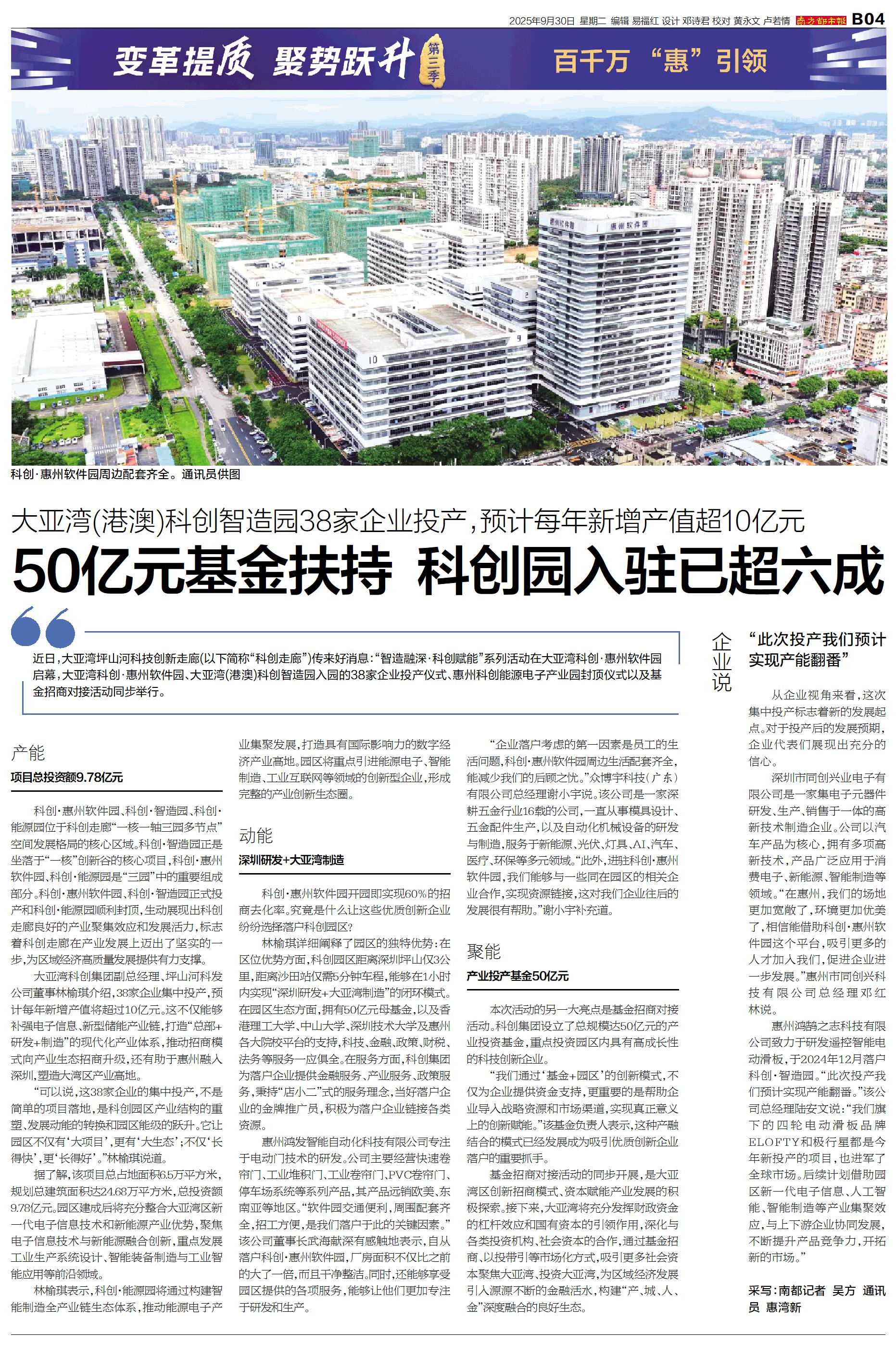 近日,大亚湾坪山河科技创新走廊(以下简称“科创走廊”)传来好消息:“智造融深·科创赋能”系列活动在大亚湾科创·惠州软件园启幕,大亚湾科创·惠州软件园、大亚湾(港澳)科创智造园入园的38家企业投产仪