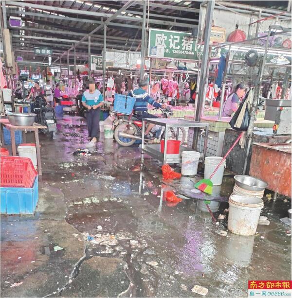 水口龙腾综合市场 门口坑洼积污水碍通行 家禽档口异味较重