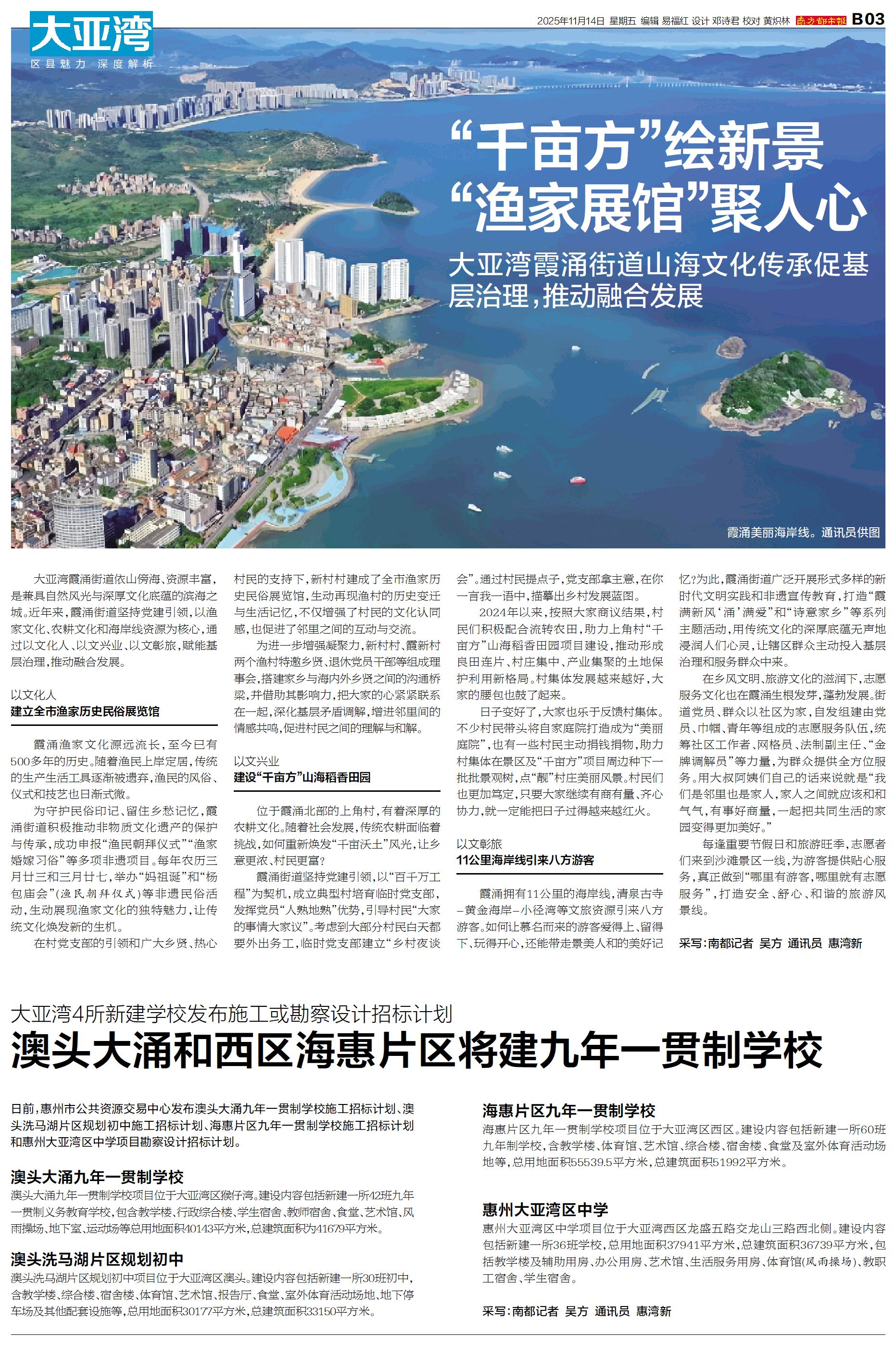 大亚湾霞涌街道依山傍海、资源丰富,是兼具自然风光与深厚文化底蕴的滨海之城。近年来,霞涌街道坚持党建引领,以渔家文化、农耕文化和海岸线资源为核心,通过以文化人、以文兴业、以文彰旅,赋能基层治理,推动