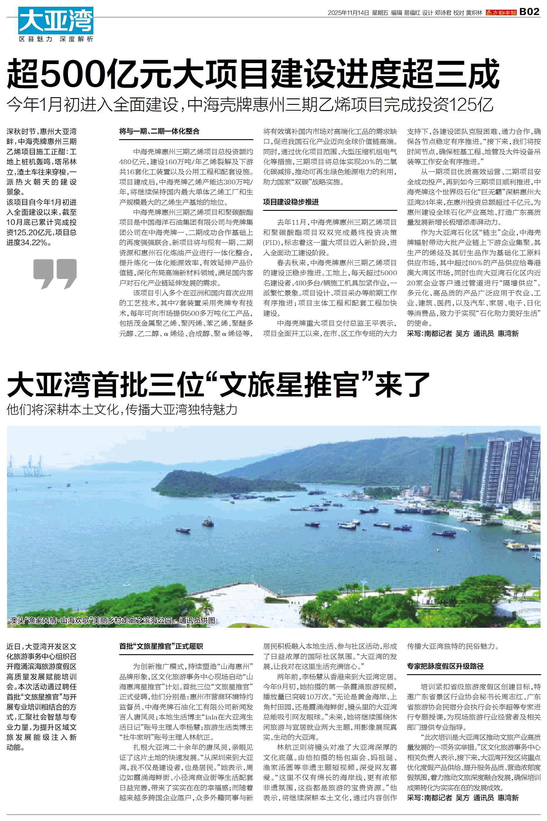 深秋时节,惠州大亚湾畔,中海壳牌惠州三期乙烯项目施工正酣:工地上桩机轰鸣,塔吊林立,渣土车往来穿梭,一派热火朝天的建设景象。 该项目自今年1月初进入全面建设以来,截至10月底已累计完成投资125