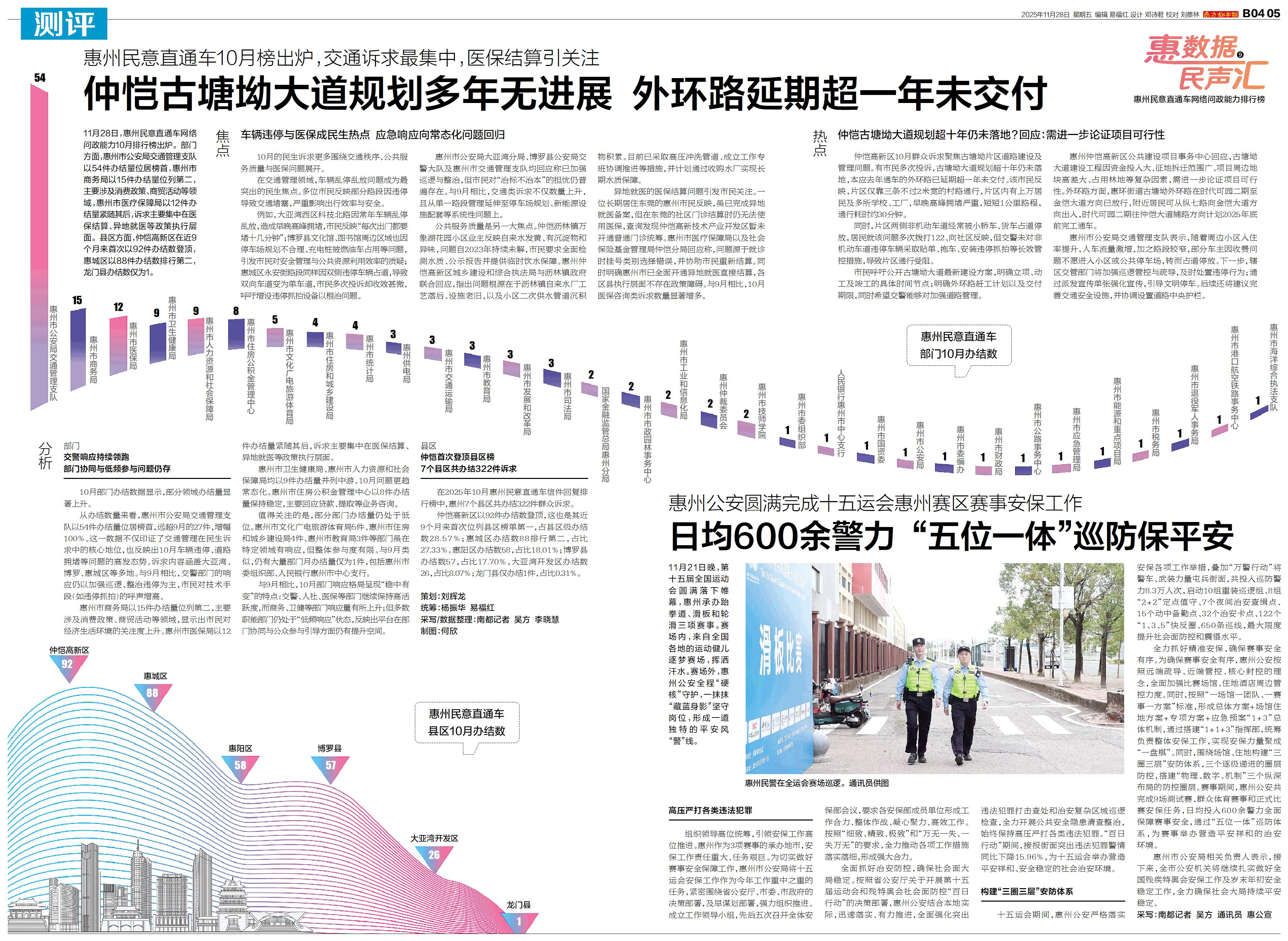 11月28日,惠州民意直通车网络问政能力10月排行榜出炉。部门方面,惠州市公安局交通管理支队以54件办结量位居榜首,惠州市商务局以15件办结量位列第二,主要涉及消费政策、商贸活动等领域,惠州市医疗