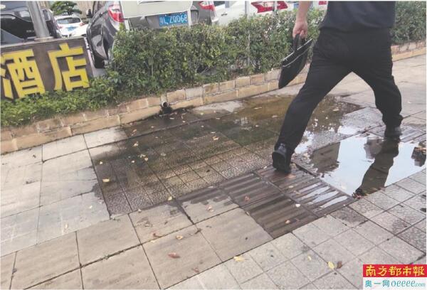 惠城区惠州大道一酒店将污水排到盲道上。