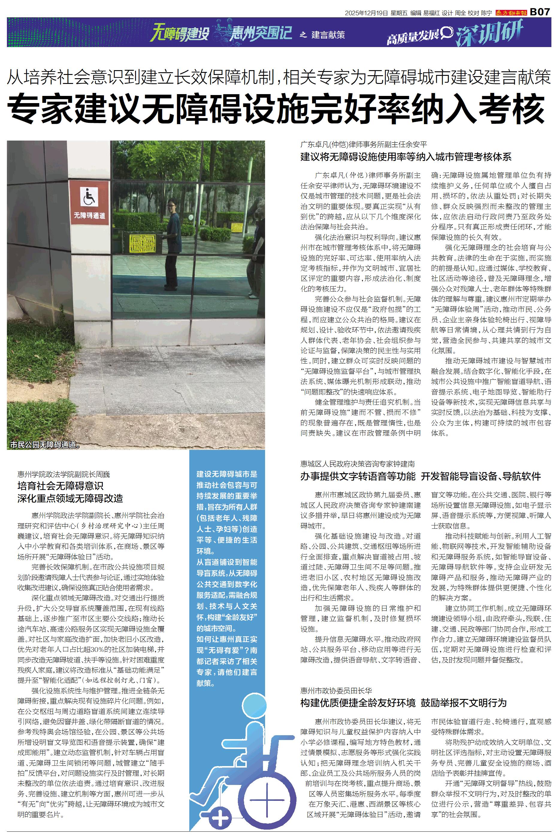 建言献策 建设无障碍城市是推动社会包容与可持续发展的重要举措,旨在为所有人群(包括老年人、残障人士、孕妇等)创造平等、便捷的生活环境。 从盲道铺设到智能导盲系统,从无障碍公共交通到数字化服务适