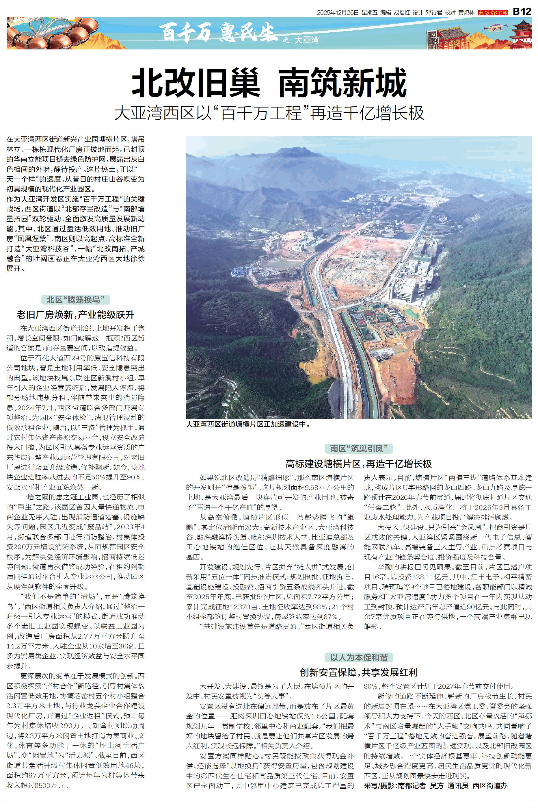 大亚湾 在大亚湾西区街道新兴产业园塘横片区,塔吊林立、一栋栋现代化厂房正拔地而起。已封顶的华南立能项目褪去绿色防护网,展露出灰白色相间的外墙,静待投产。这片热土,正以“一天一个样”的速度,从昔日