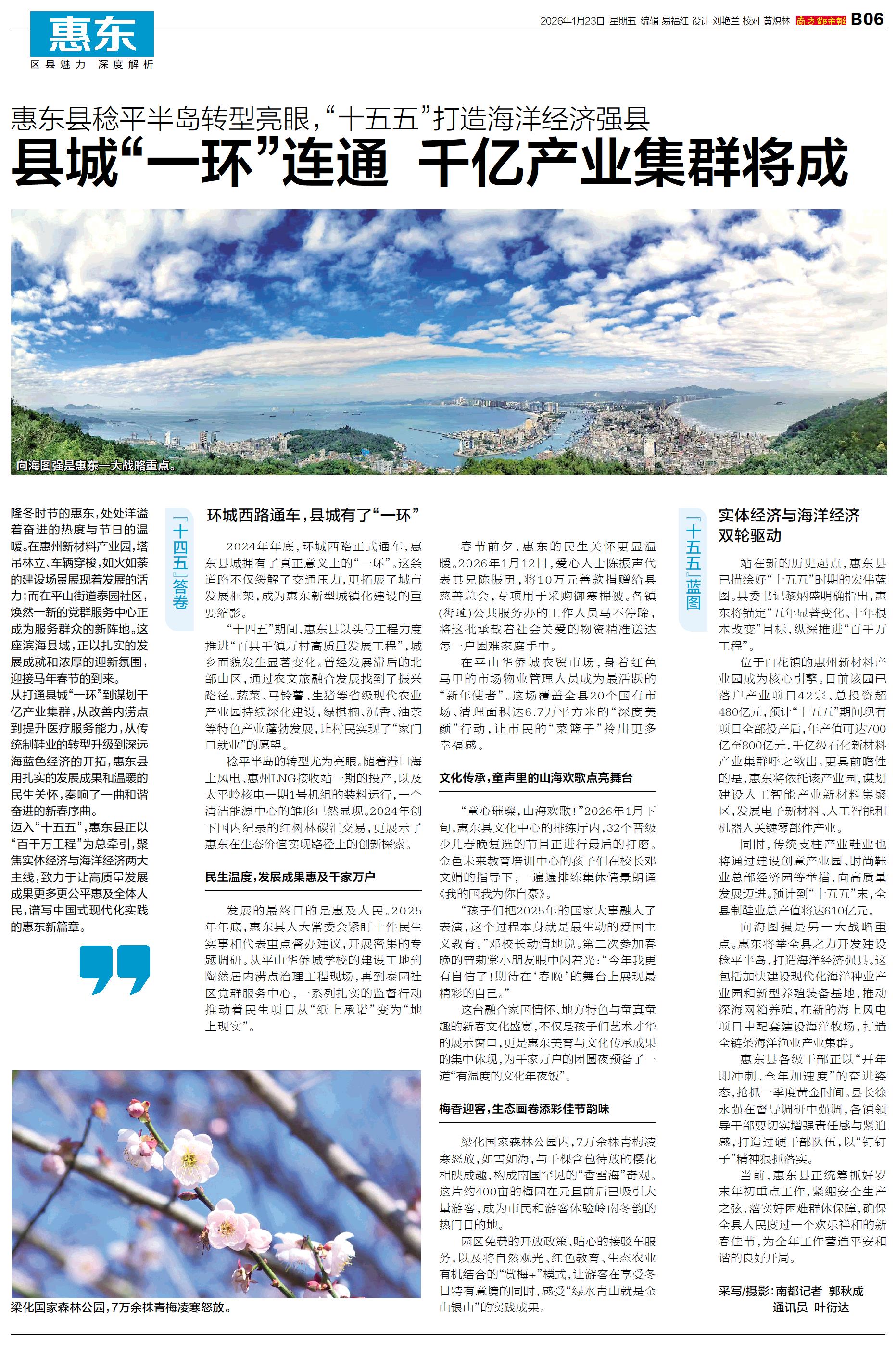 隆冬时节的惠东,处处洋溢着奋进的热度与节日的温暖。在惠州新材料产业园,塔吊林立、车辆穿梭,如火如荼的建设场景展现着发展的活力;而在平山街道泰园社区,焕然一新的党群服务中心正成为服务群众的新阵地。这