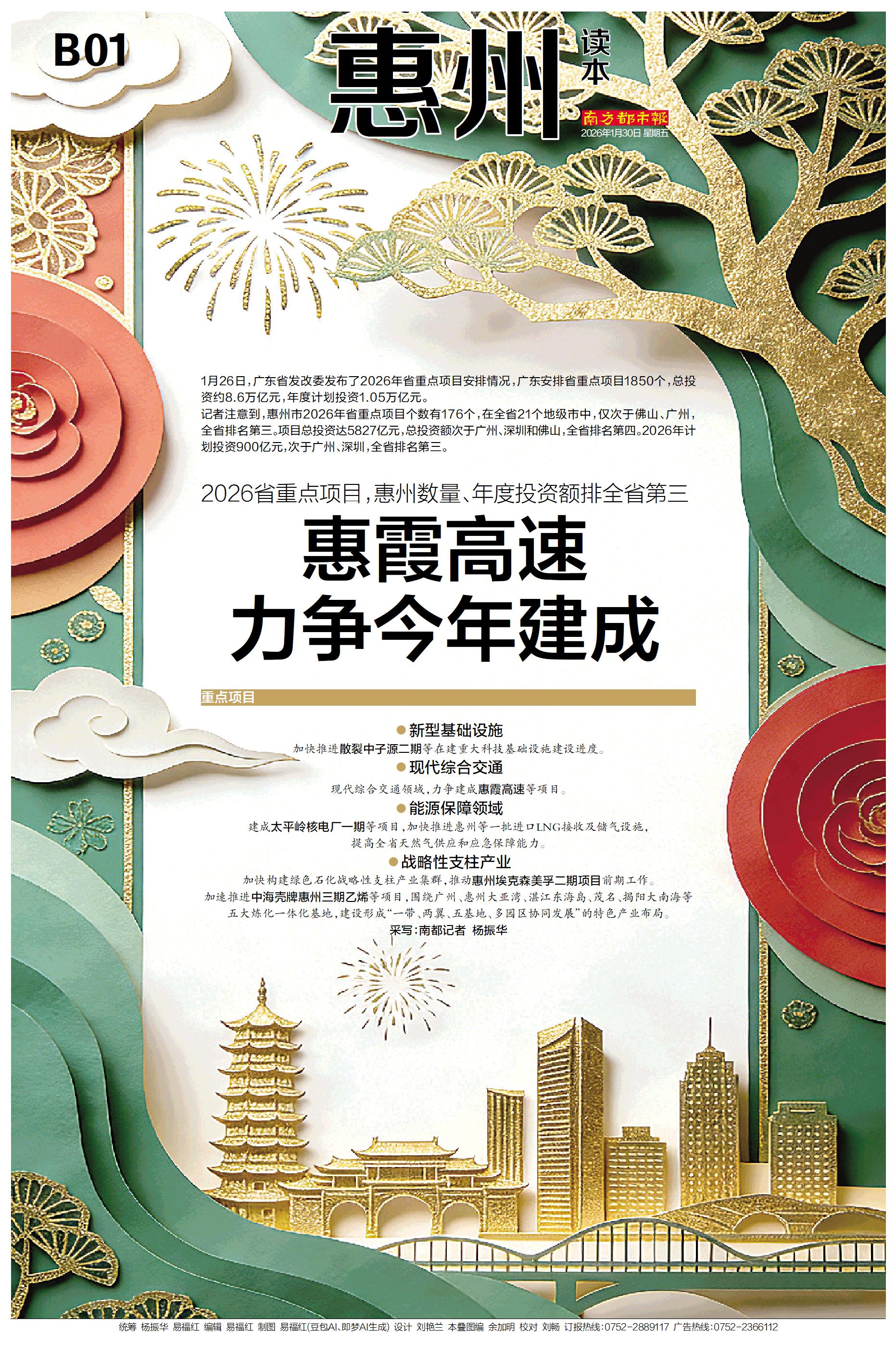 1月26日,广东省发改委发布了2026年省重点项目安排情况,广东安排省重点项目1850个,总投资约8.6万亿元,年度计划投资1.05万亿元。 记者注意到,惠州市2026年省重点项目个数有176个