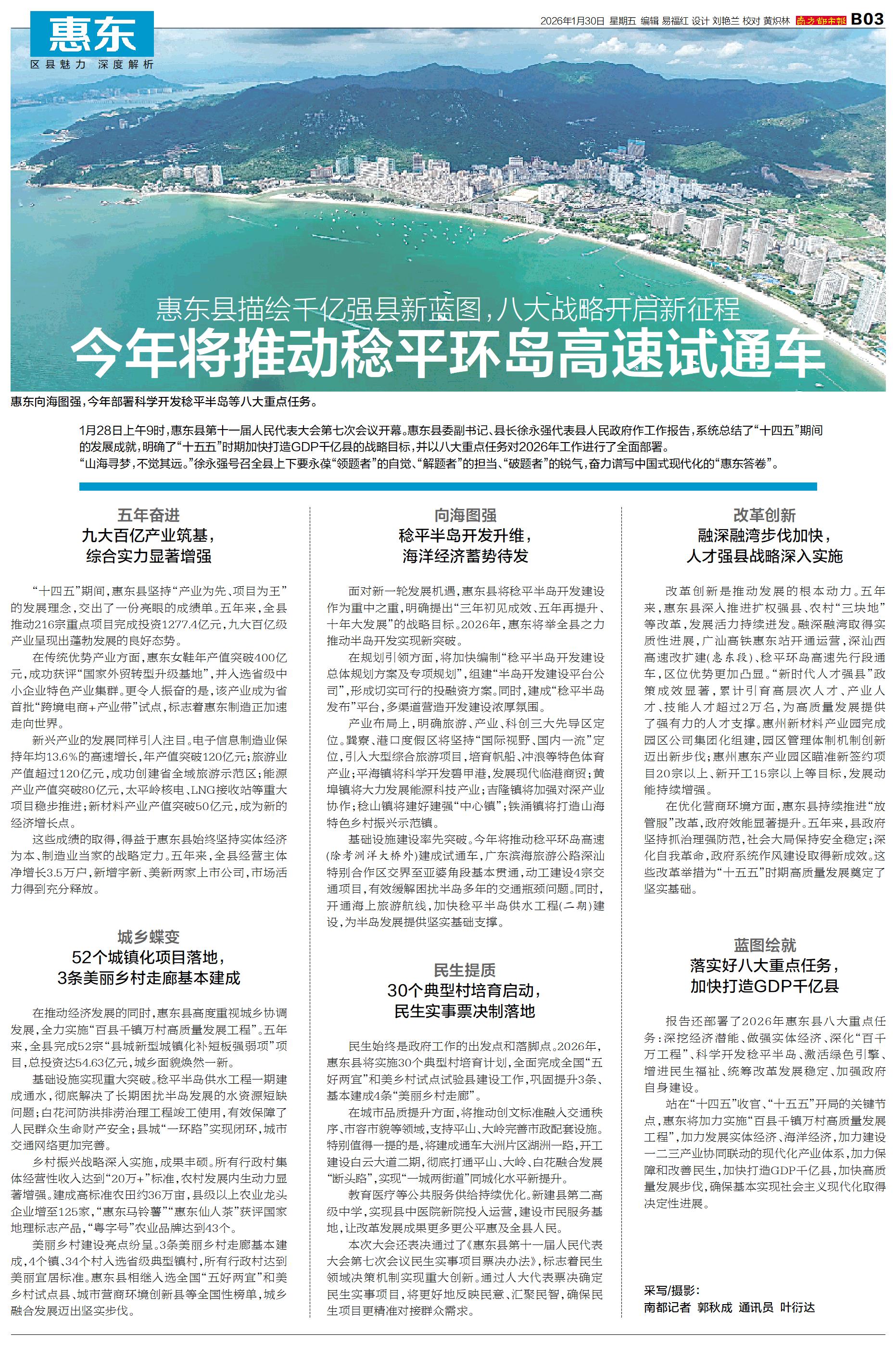 今年将推动稔平环岛高速试通车