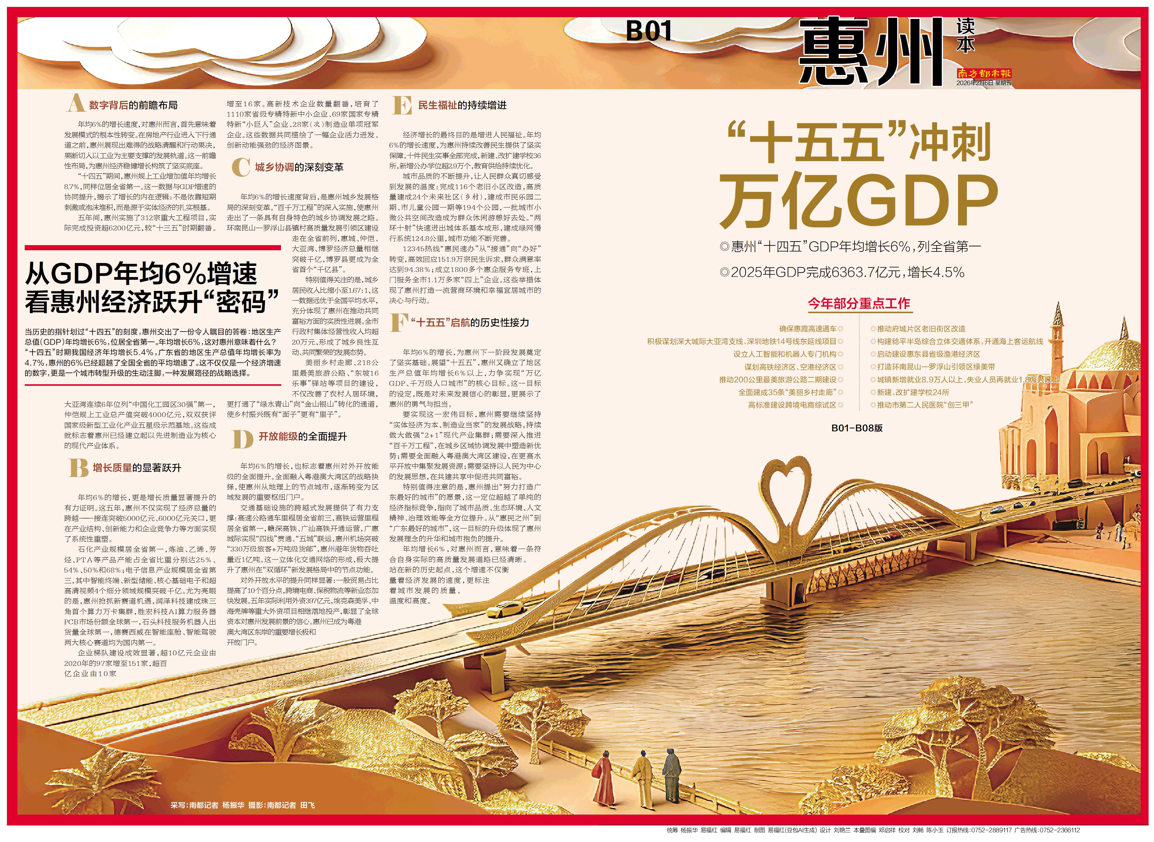 当历史的指针划过“十四五”的刻度,惠州交出了一份令人瞩目的答卷:地区生产总值(GDP)年均增长6%,位居全省第一。年均增长6%,这对惠州意味着什么? “十四五”时期我国经济年均增长5.4%,广东