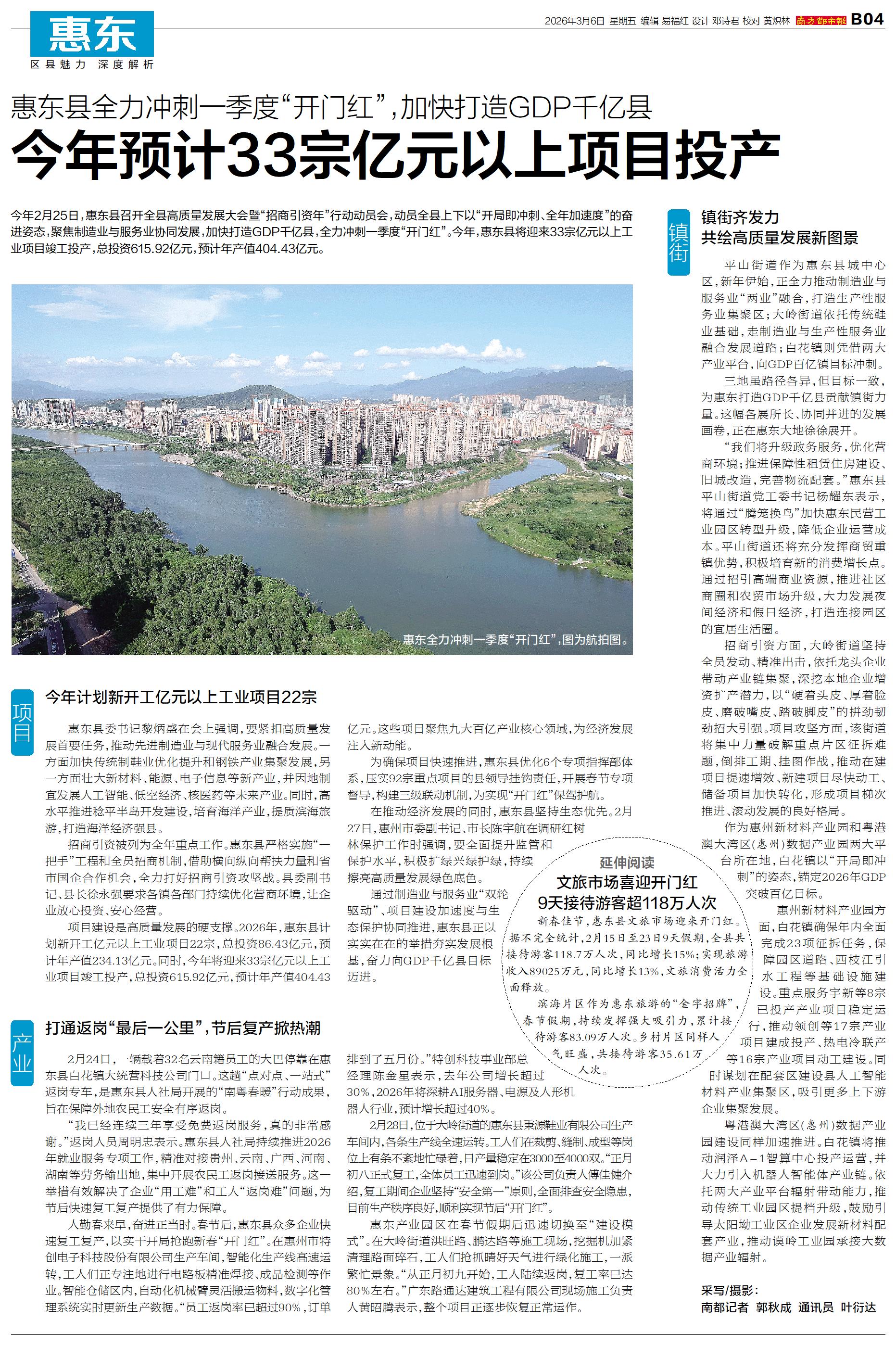 今年2月25日,惠东县召开全县高质量发展大会暨“招商引资年”行动动员会,动员全县上下以“开局即冲刺、全年加速度”的奋进姿态,聚焦制造业与服务业协同发展,加快打造GDP千亿县,全力冲刺一季度“开门红