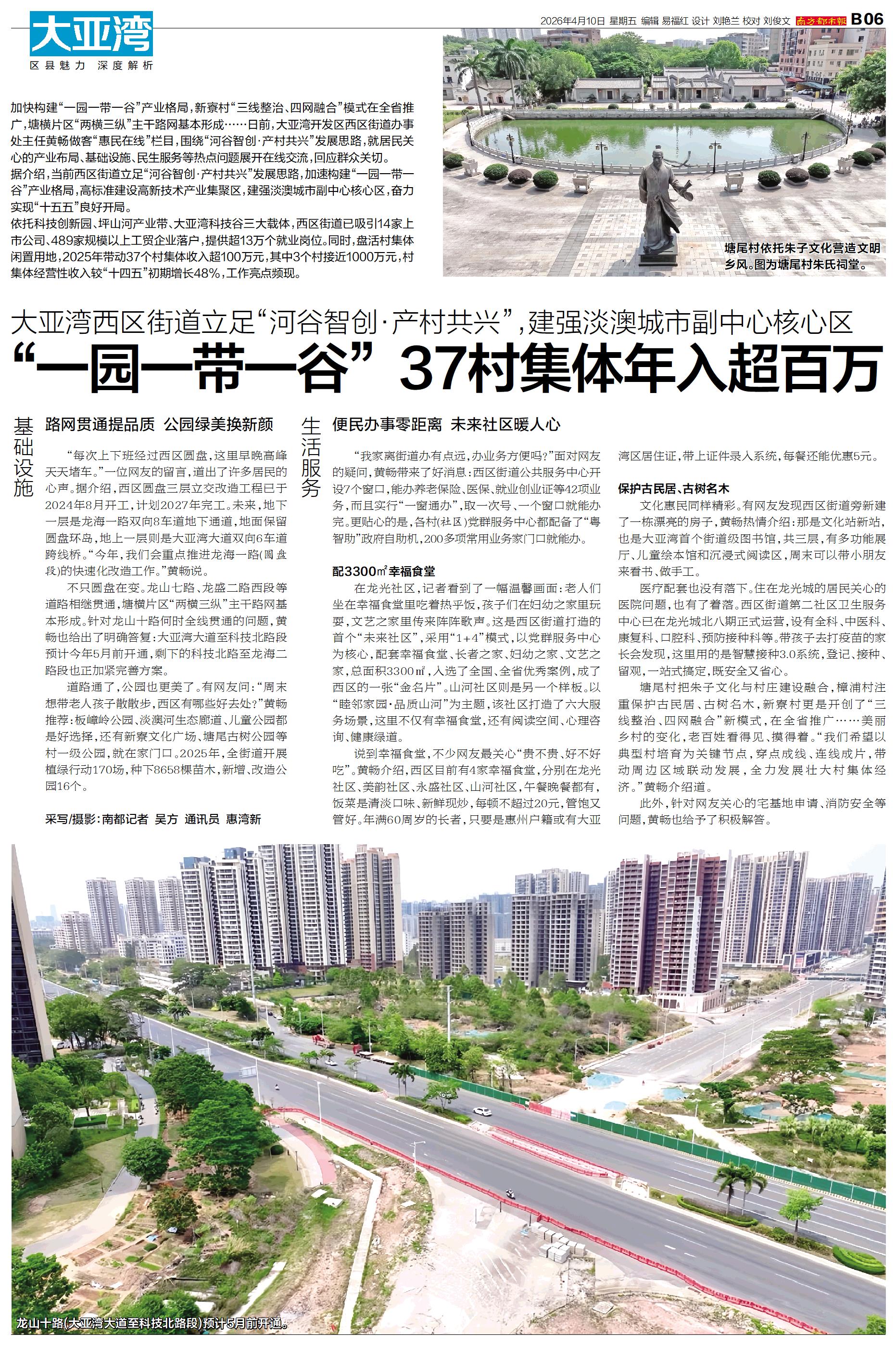 加快构建“一园一带一谷”产业格局,新寮村“三线整治、四网融合”模式在全省推广,塘横片区“两横三纵”主干路网基本形成……日前,大亚湾开发区西区街道办事处主任黄畅做客“惠民在线”栏目,围绕“河谷智创·