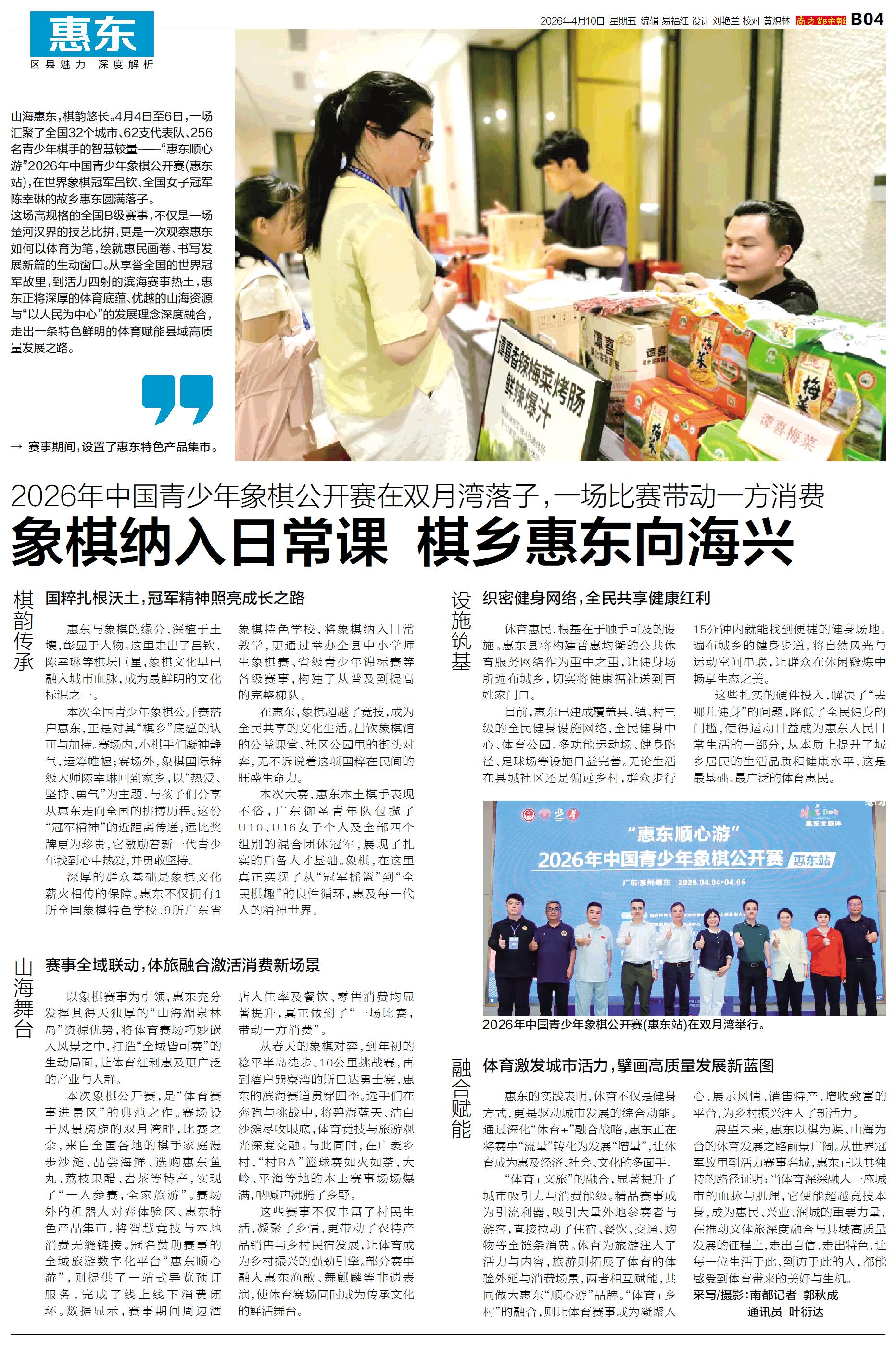 山海惠东,棋韵悠长。4月4日至6日,一场汇聚了全国32个城市、62支代表队、256名青少年棋手的智慧较量——“惠东顺心游”2026年中国青少年象棋公开赛(惠东站),在世界象棋冠军吕钦、全国女子冠军