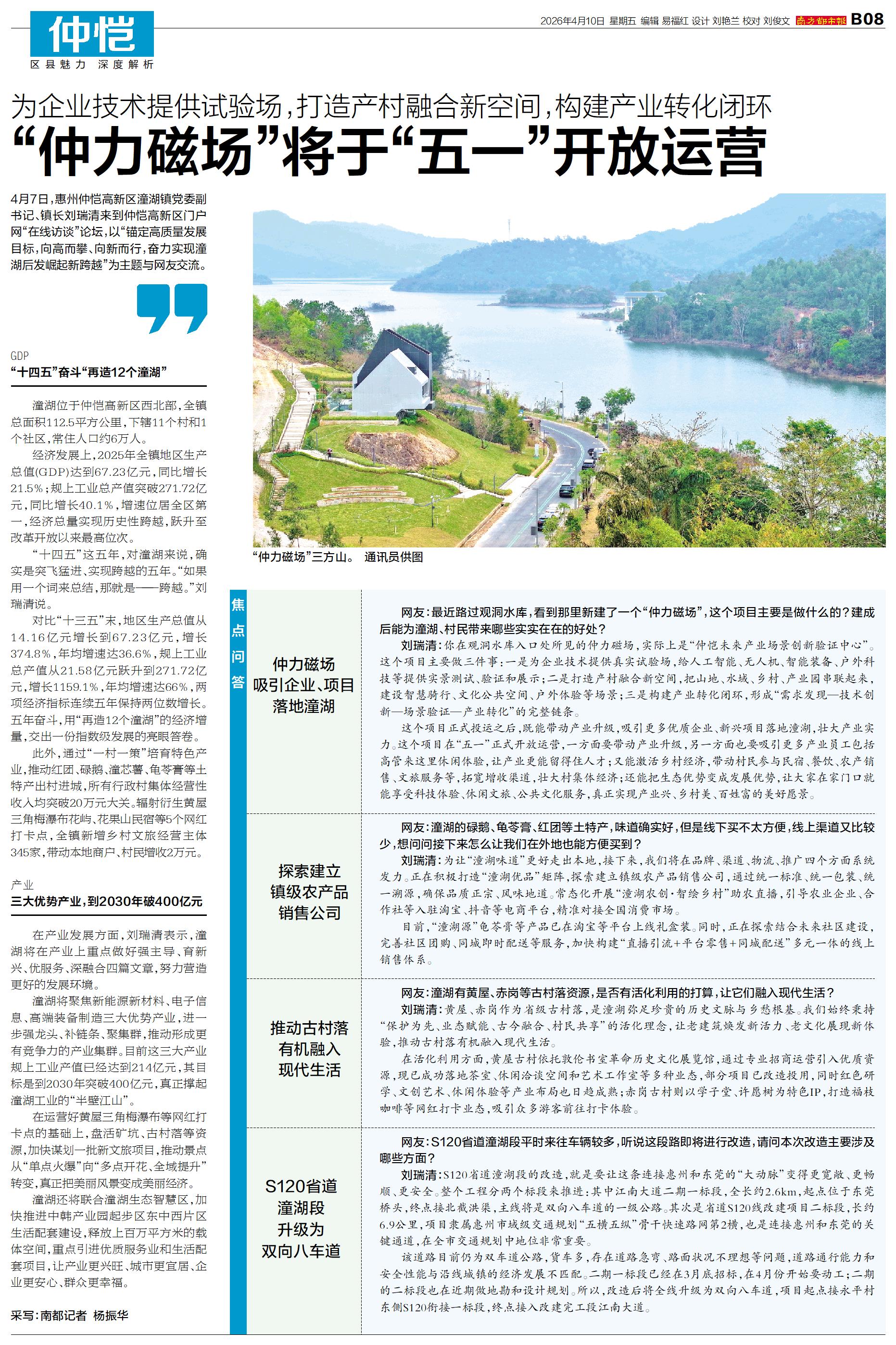 4月7日,惠州仲恺高新区潼湖镇党委副书记、镇长刘瑞清来到仲恺高新区门户网“在线访谈”论坛,以“锚定高质量发展目标,向高而攀、向新而行,奋力实现潼湖后发崛起新跨越”为主题与网友交流。 GDP “