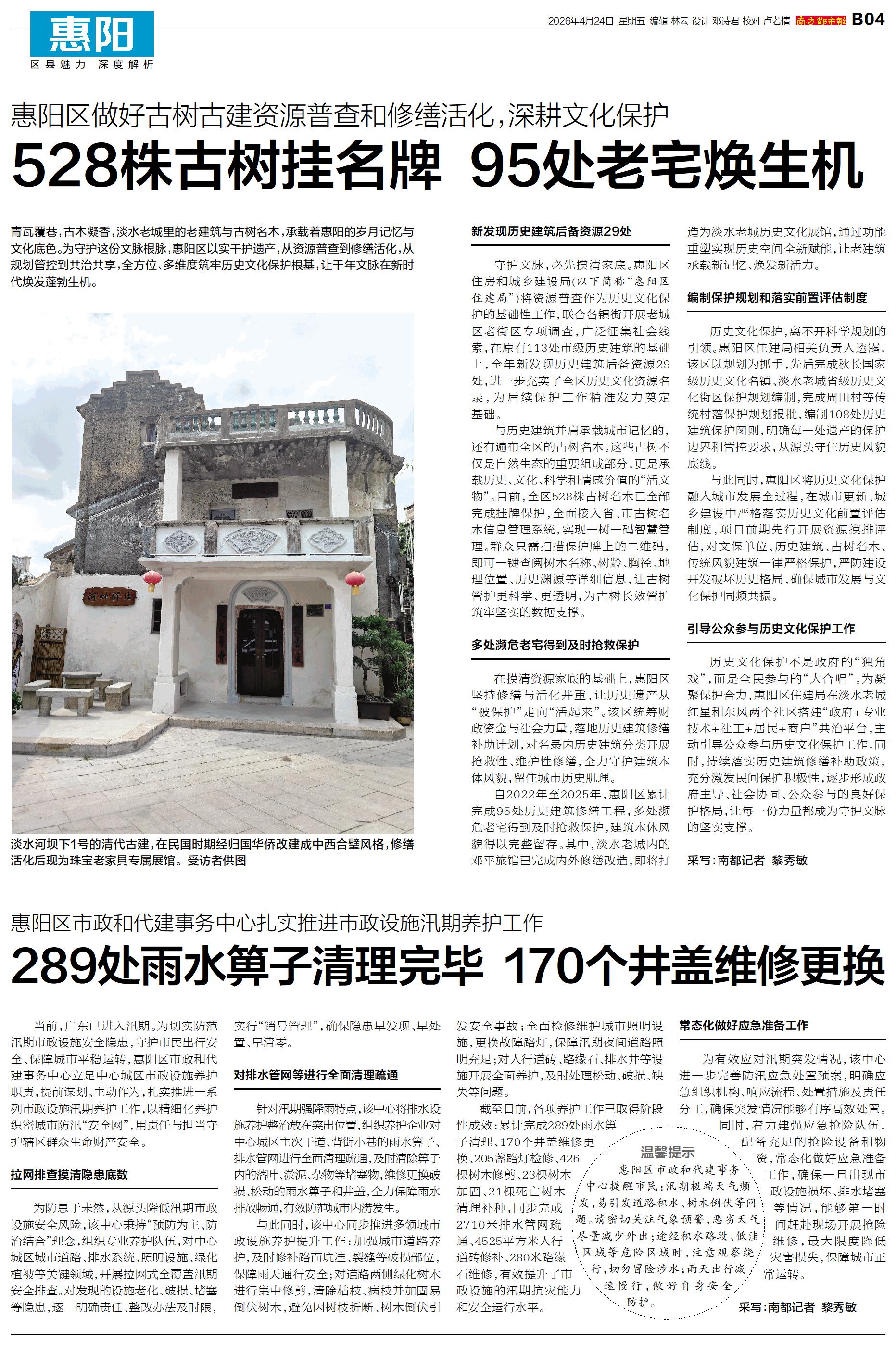 青瓦覆巷,古木凝香,淡水老城里的老建筑与古树名木,承载着惠阳的岁月记忆与文化底色。为守护这份文脉根脉,惠阳区以实干护遗产,从资源普查到修缮活化,从规划管控到共治共享,全方位、多维度筑牢历史文化保护