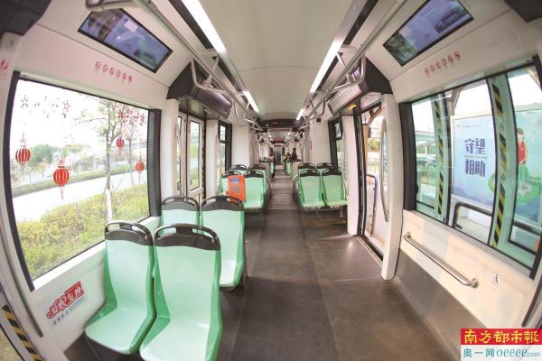 3月16日下午5时许,佛山高明,下班高峰时段高明有轨电车客流量较少。