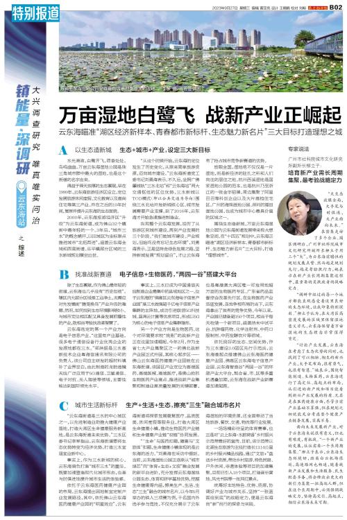 综述 A 以生态造新城 生态+城市+产业,设定三大新目标 水光滟潋,白鹭齐飞,荷香处处,鸟鸣幽幽,万亩云东海湿地公园是珠三角城市群中最大的湿地,也是这个街道的名字由来。 得益于得天独厚的生