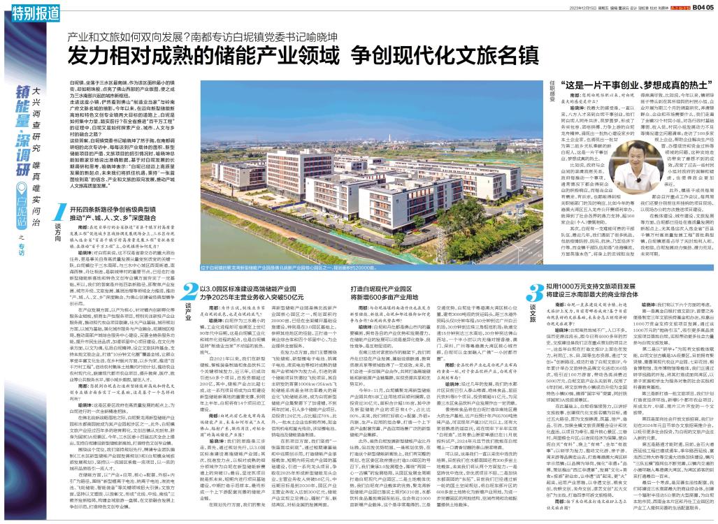 发力相对成熟的储能产业领域 争创现代化文旅名镇