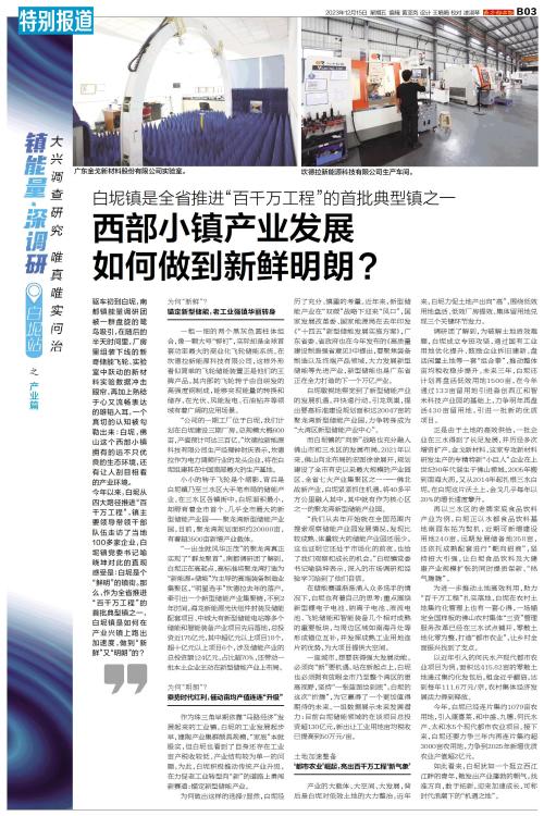 产业篇 驱车初到白坭,南都镇能量调研团被一群盘旋的鹭鸟吸引,在随后的半天时间里,厂房里组装下线的新奇储能飞轮、实验室中跃动的新材料实验数据冲击眼帘,再加上熟稔于心又流畅表达的雄韬入耳,一个真切的