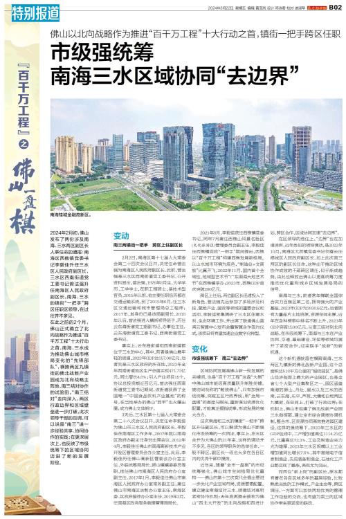 2024年2月初,佛山发布了两份涉及南海、三水两区副区长人事任命的通报:南海区西樵镇党委书记李毅佳升任三水区人民政府副区长,三水区西南街道党工委书记曾法强升任南海区人民政府副区长。南海、三水的镇街