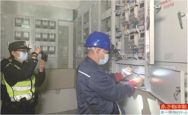 南方电网广东佛山禅城供电局城区供电所联合派出所、电网警务室开展反窃电专项行动。