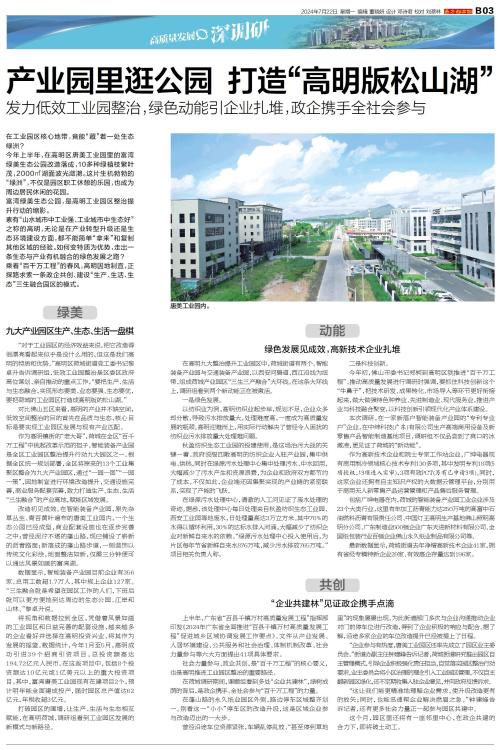 在工业园区核心地带,竟能“藏”着一处生态绿洲? 今年上半年,在高明区唐美工业园里的富湾绿美生态公园改造落成,10多种绿植枝繁叶茂,2000㎡湖面波光潋滟。这片生机勃勃的“绿洲”,不仅是园区职工休