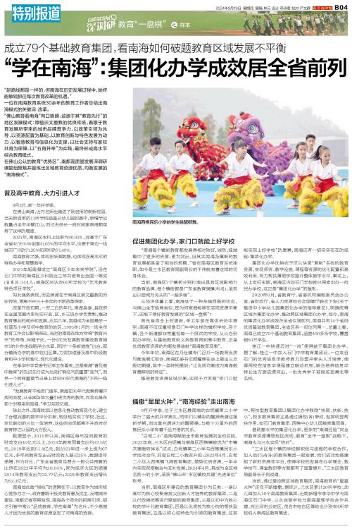 教育“一盘棋”之样本 “起跑线都是一样的,但南海在历史发展过程中,始终能敏锐抓住每次教育改革的机遇。” 一位在南海教育系统30余年的教育工作者总结出南海模式的关键词:改革。 “佛山教育看南海