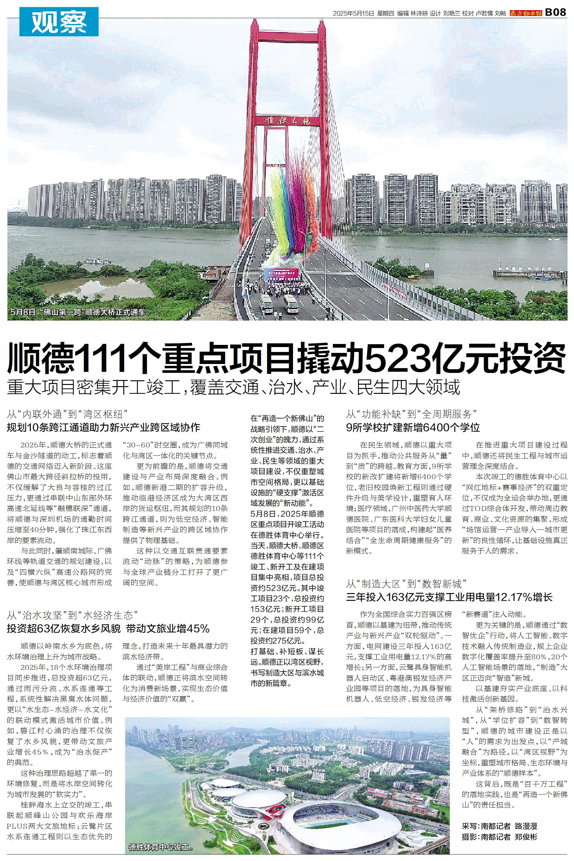 打基础、补短板、谋长远。顺德正以湾区视野,书写制造大区与滨水城市的新篇章。