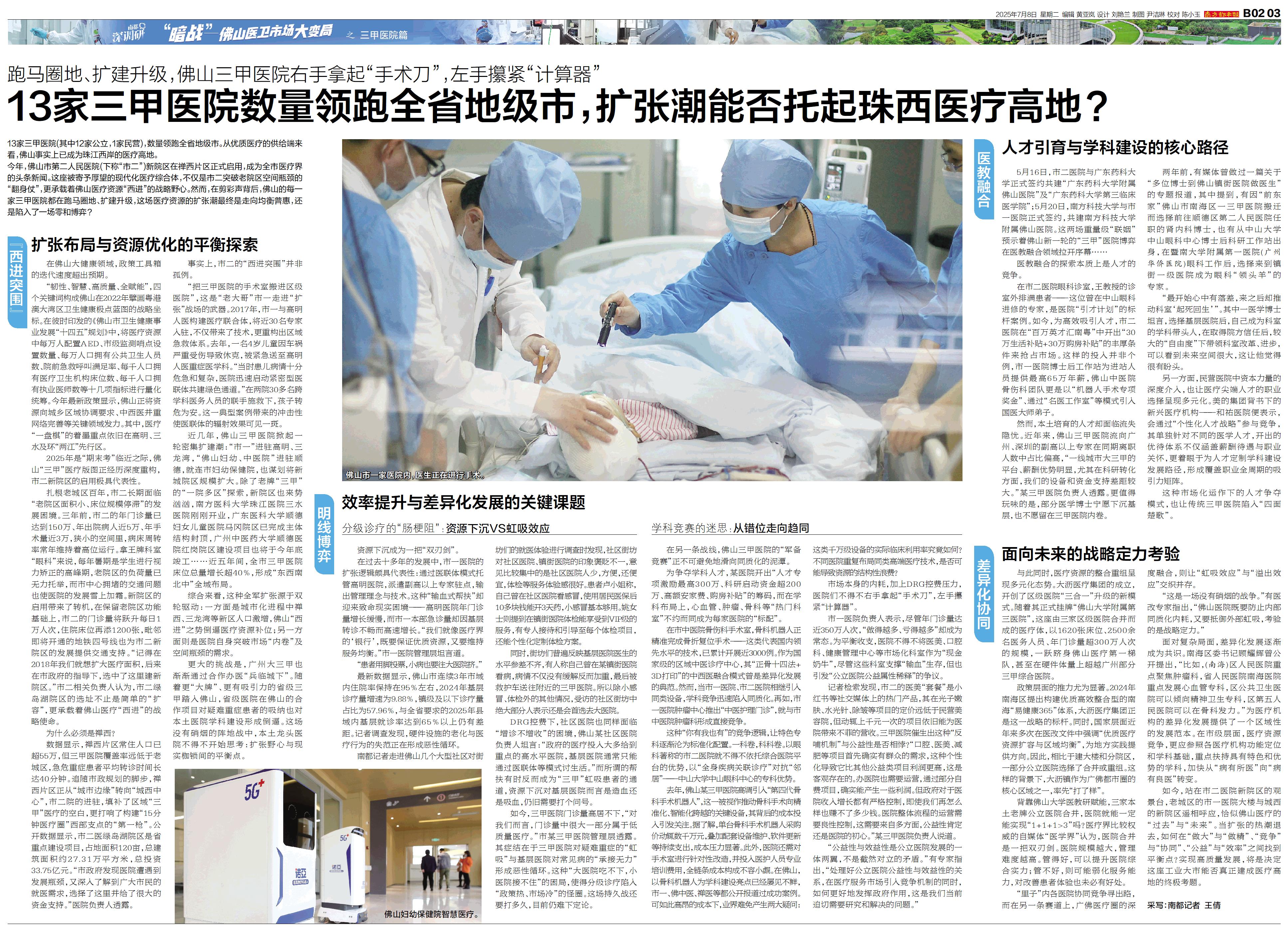 “暗战”——佛山医卫市场大变局之三甲医院篇 13家三甲医院(其中12家公立,1家民营),数量领跑全省地级市。从优质医疗的供给端来看,佛山事实上已成为珠江西岸的医疗高地。 今年,佛山市第二人民医