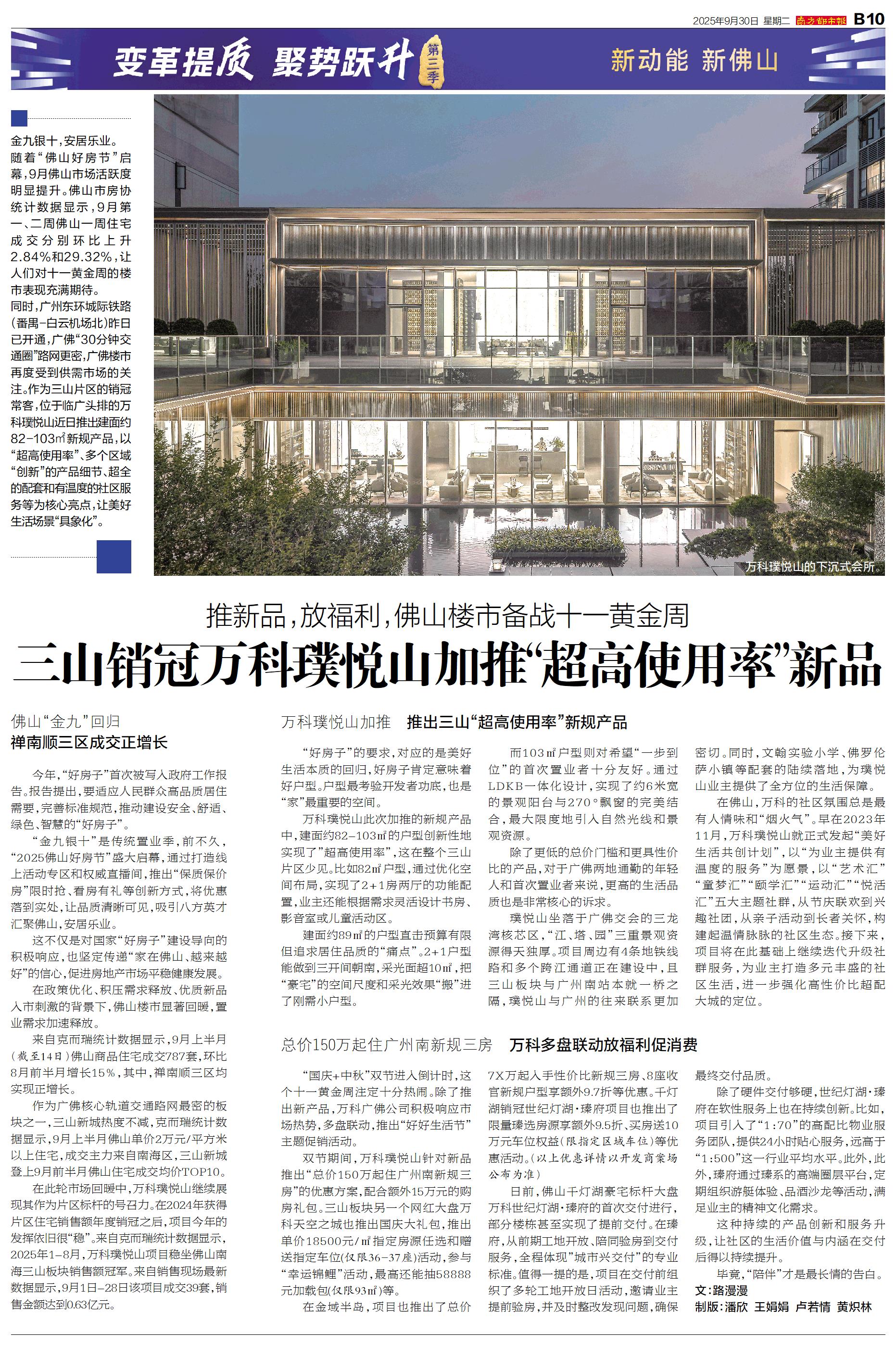 金九银十,安居乐业。 随着“佛山好房节”启幕,9月佛山市场活跃度明显提升。佛山市房协统计数据显示,9月第一、二周佛山一周住宅成交分别环比上升2.84%和29.32%,让人们对十一黄金周的楼市表现