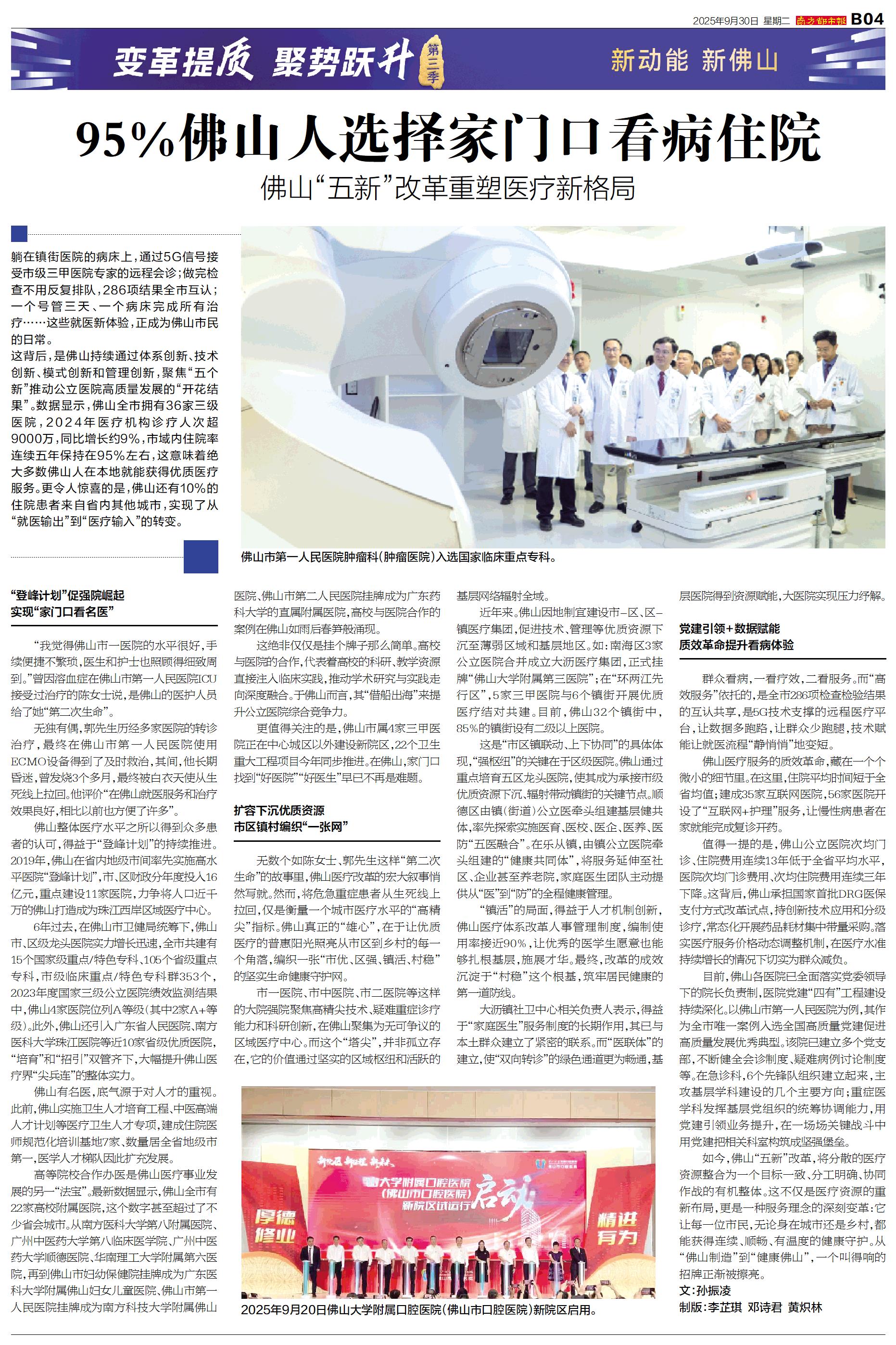 躺在镇街医院的病床上,通过5G信号接受市级三甲医院专家的远程会诊;做完检查不用反复排队,286项结果全市互认;一个号管三天、一个病床完成所有治疗……这些就医新体验,正成为佛山市民的日常。 这背后