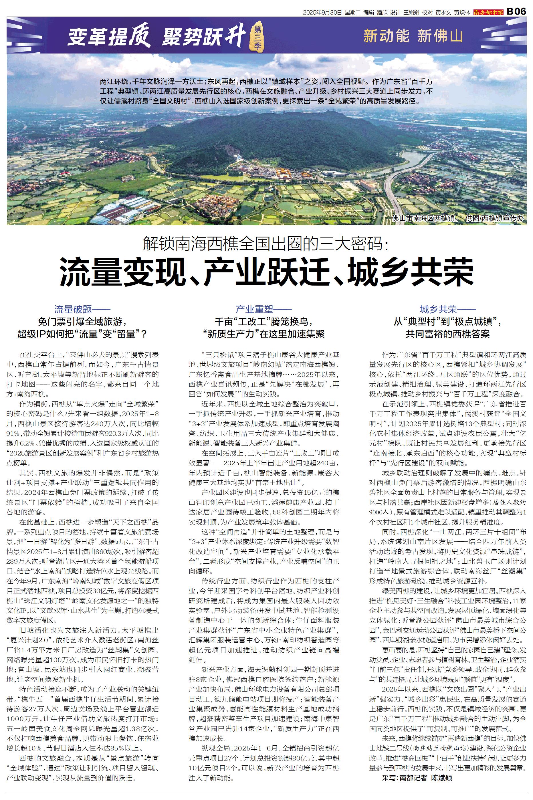两江环绕,千年文脉润泽一方沃土;东风再起,西樵正以“镇域样本”之姿,闯入全国视野。作为广东省“百千万工程”典型镇、环两江高质量发展先行区的核心,西樵在文旅融合、产业升级、乡村振兴三大赛道上同步发力