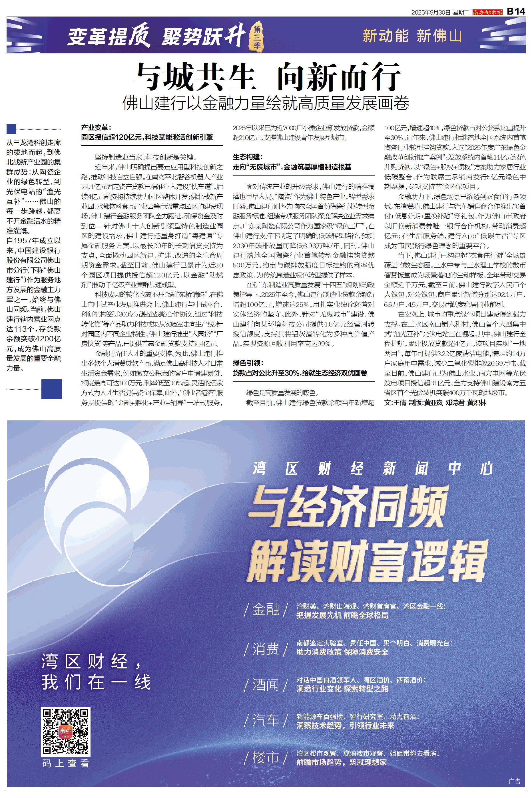 从三龙湾科创走廊的拔地而起,到佛北战新产业园的集群成势;从陶瓷企业的绿色转型,到光伏电站的“渔光互补”……佛山的每一步跨越,都离不开金融活水的精准灌溉。 自1957年成立以来,中国建设银行股份有