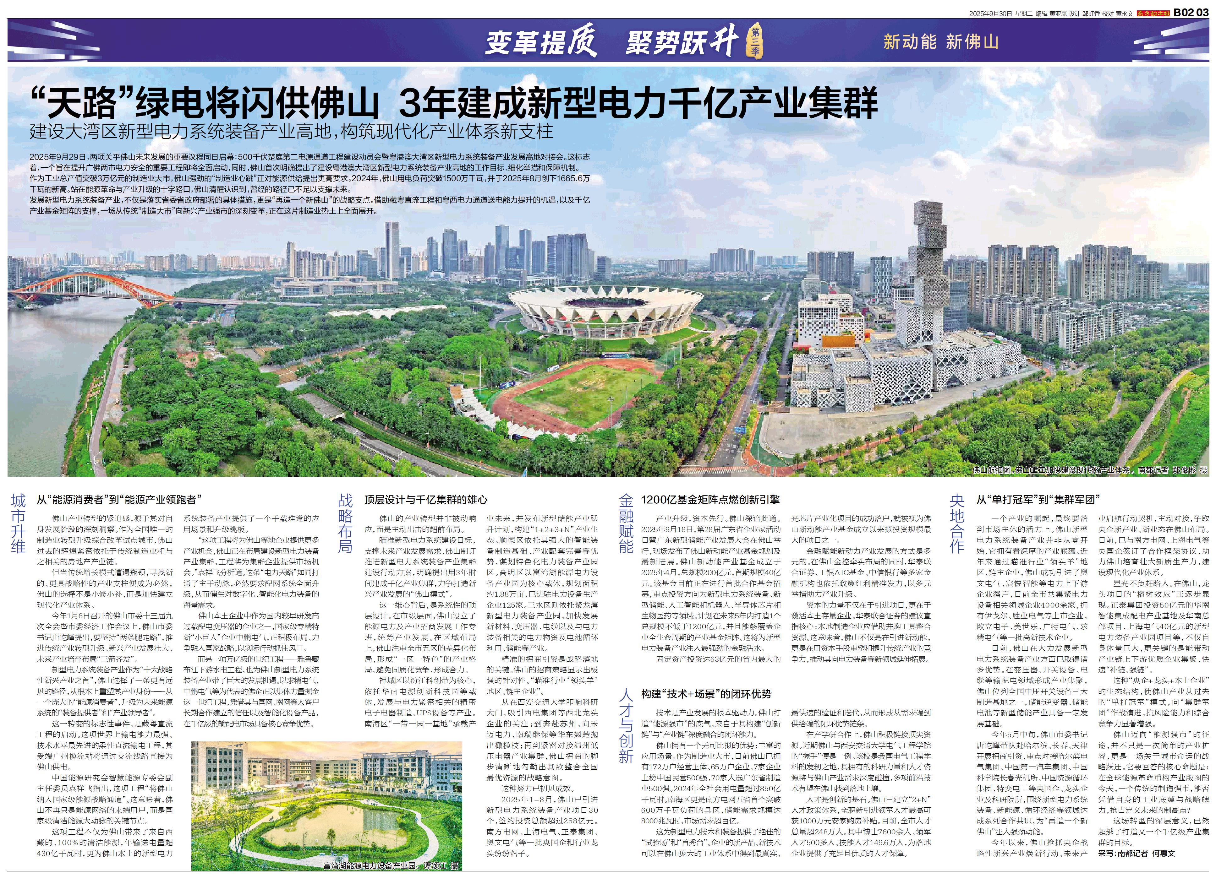 “天路”绿电将闪供佛山 3年建成新型电力千亿产业集群