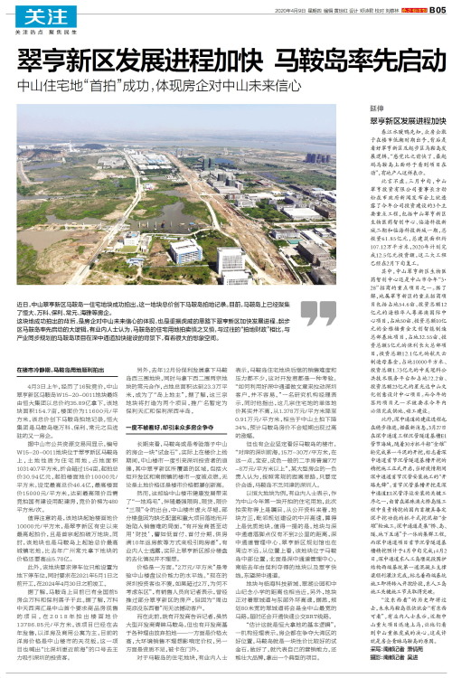 近日,中山翠亨新区马鞍岛一住宅地块成功拍出。这一地块总价创下马鞍岛拍地记录。目前,马鞍岛上已经聚集了恒大、万科、保利、常元、海雅等房企。这块地成功拍出的背后,是房企对中山未来信心的体现,也是重振虎威的